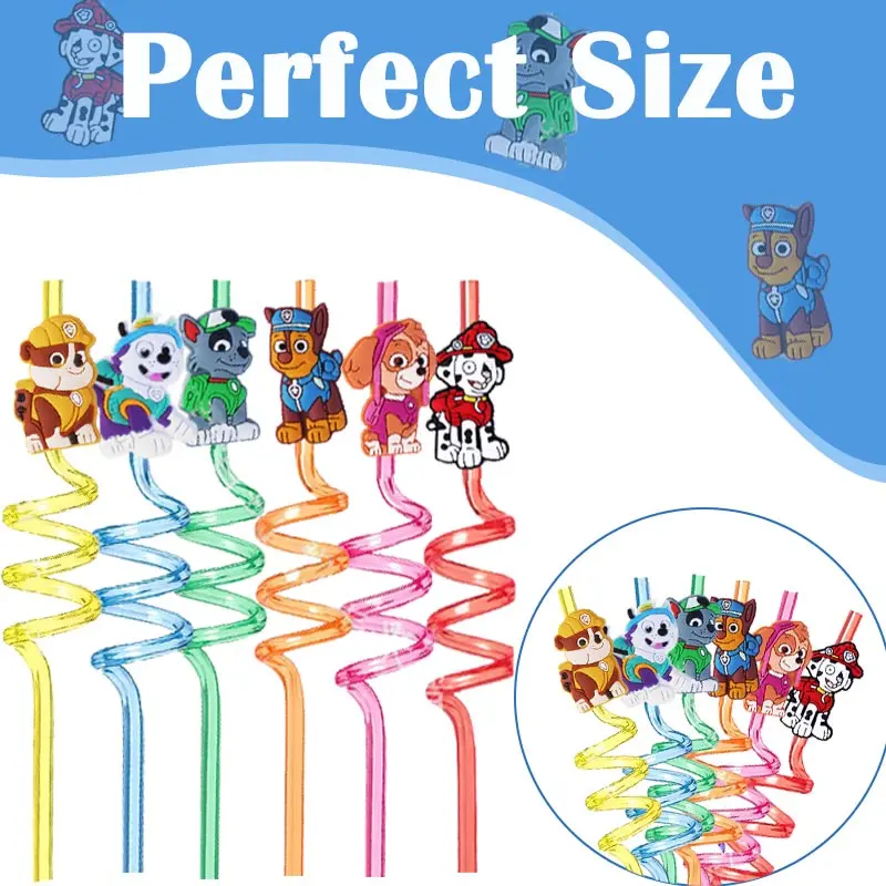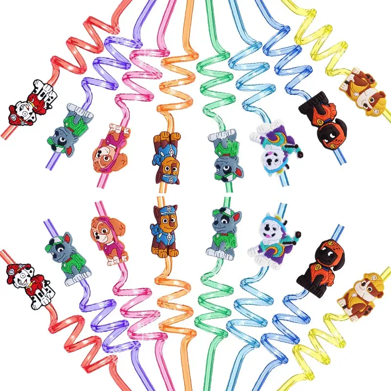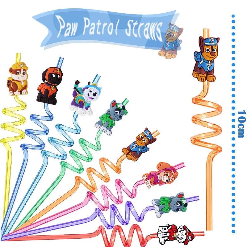 8pcs Paw Patrol Reusable Straws – Chase Cartoon Party Supplies for Baby Shower