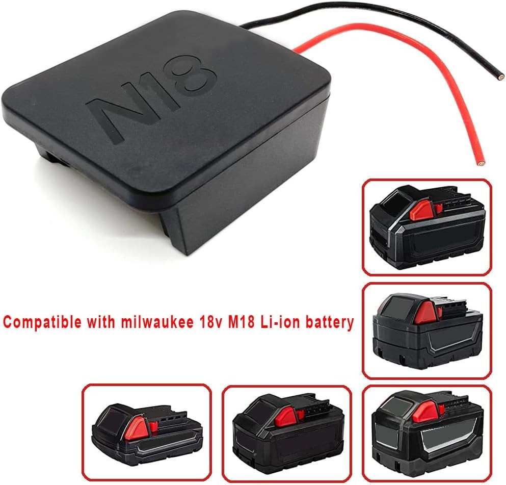 Battery Adapter for Milwaukee M18 18V Battery Power Mount Dock Holder with12AWG