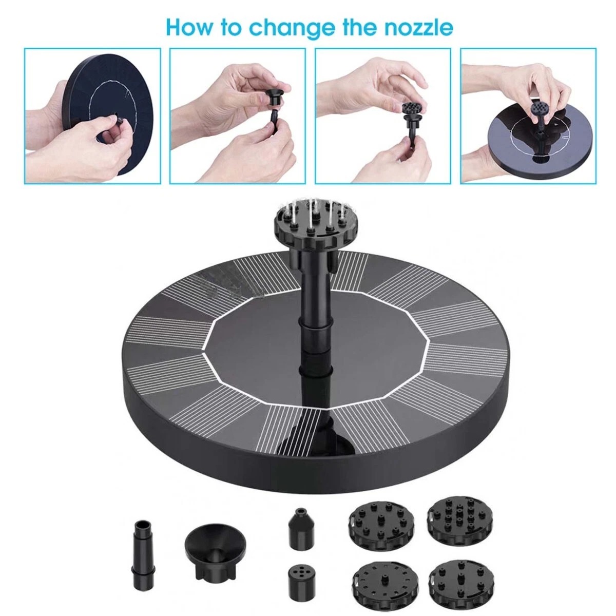 The item is high-quality solar powered floating type water pump, which is powered by solar energy, no extra power needed, low efficiency, poor stability of similar products and even easier to start than the same power brush pump. It can be used for water cycle, pond fountain, rockery fountain, etc. With eco-friendly design and easy to use, it is really a wonderful water pump for choice.