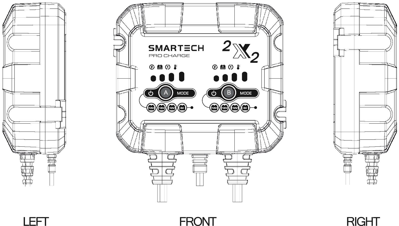 • A cutting-edge two-bank battery charger, maintainer, trickle charger, and battery desulfator—your comprehensive solution for effective battery maintenance.