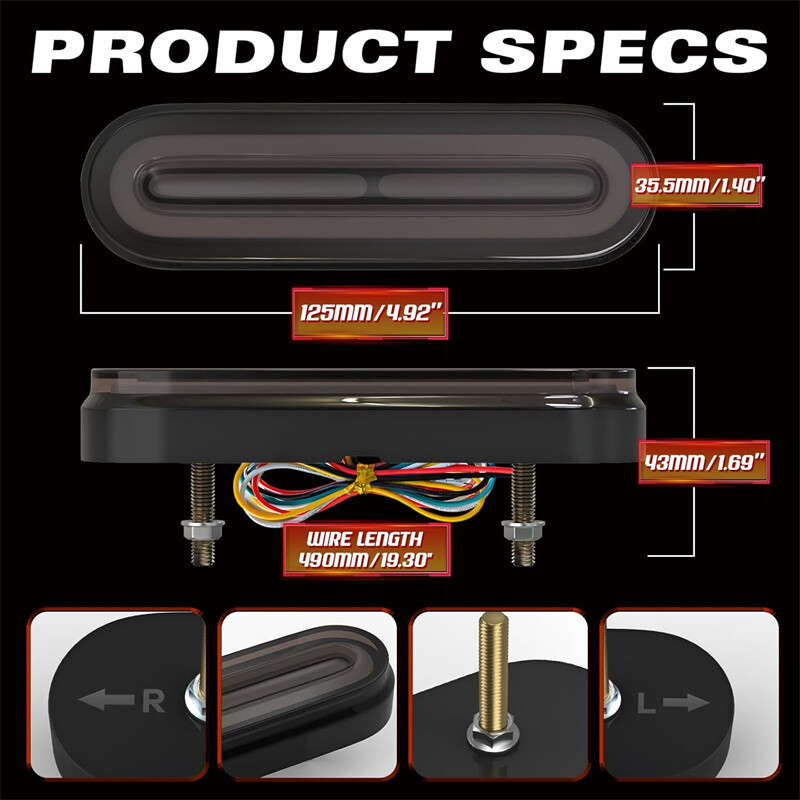 Ultra-Bright LED - Day & night high-visibility safety light equipped with 60SMD 120-lumen high-intensity LED chips, this dirt bike turn signal and brake light is 200% brighter than standard models. Features flashing brake lights sequential turn signals for maximum visibility in all conditions.