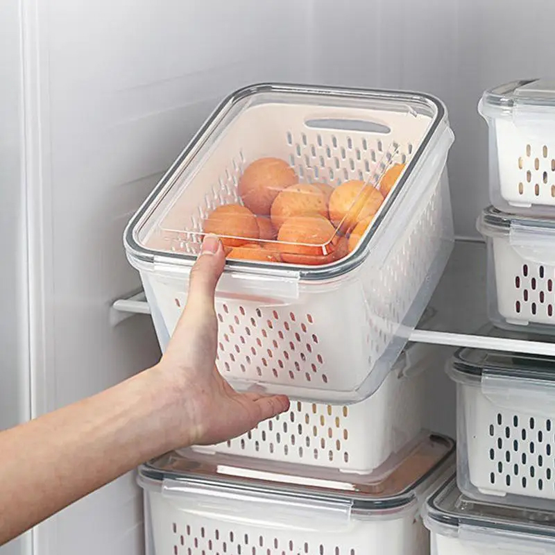 3150ML Refrigerator Storage Box Fridge Fresh Kitchen Organizer Vegetable Fruit Boxes Drain Basket Kitchen Storage Containers Lid