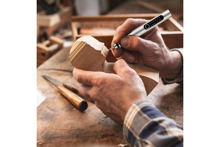 Equipped with a rechargeable 5V lithium battery, the tool is conveniently powered through a compatible USB connector, making charging easy and accessible. It offers three rotation speeds (5000, 10000, and 15000 rpm), adjustable with a single button, to suit different project needs.