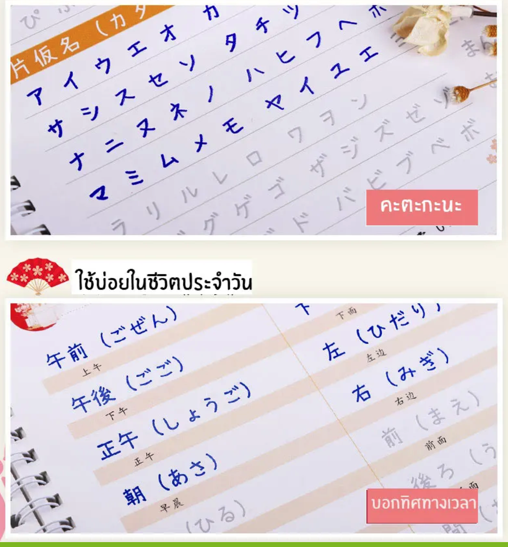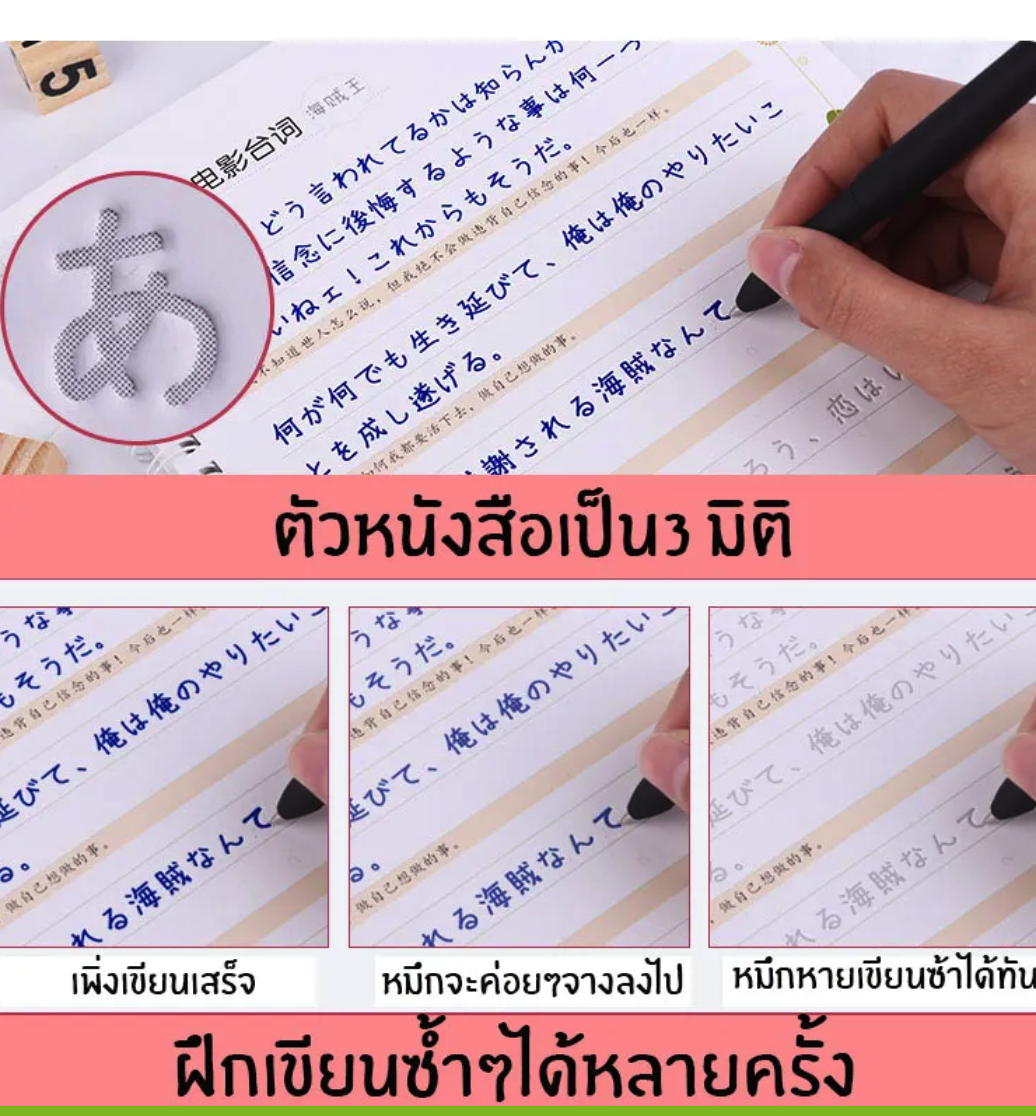 Master Japanese writing with this beginner-friendly practice set! Designed for students and beginners, it allows repeated practice without wasting paper. The notebook features 3D-style characters for Hiragana, Katakana, and Kanji, along with basic daily vocabulary.