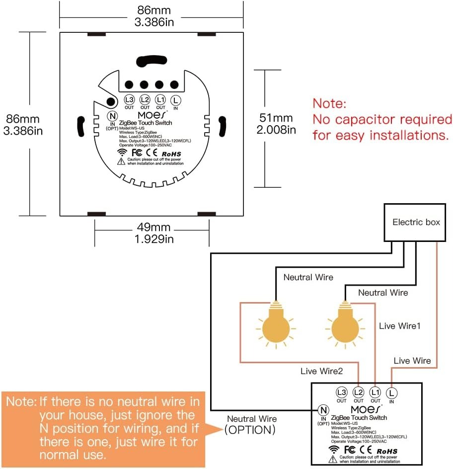 Zs-us4-bk-ms Touch Smart Light Switch with Smart Life Voice Control