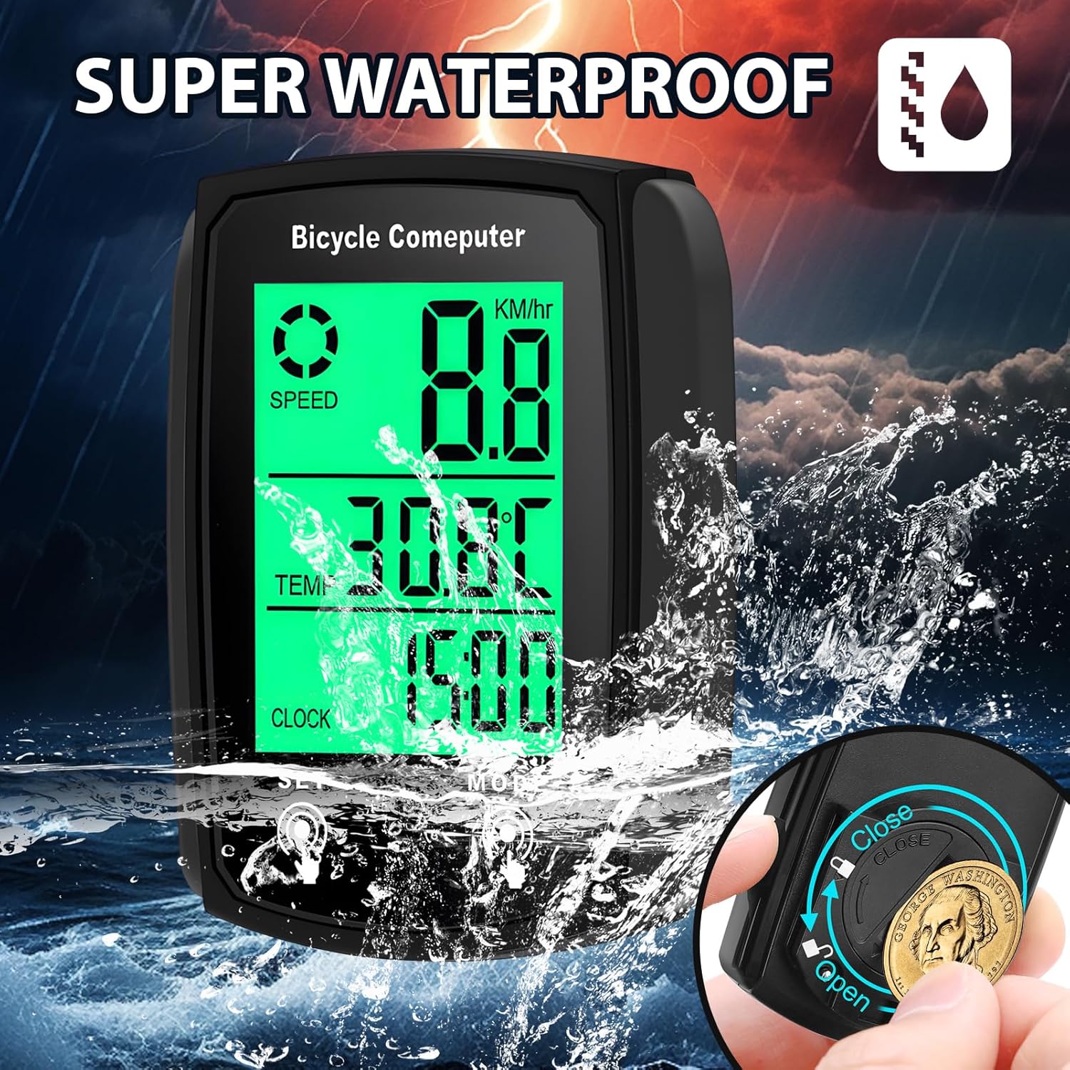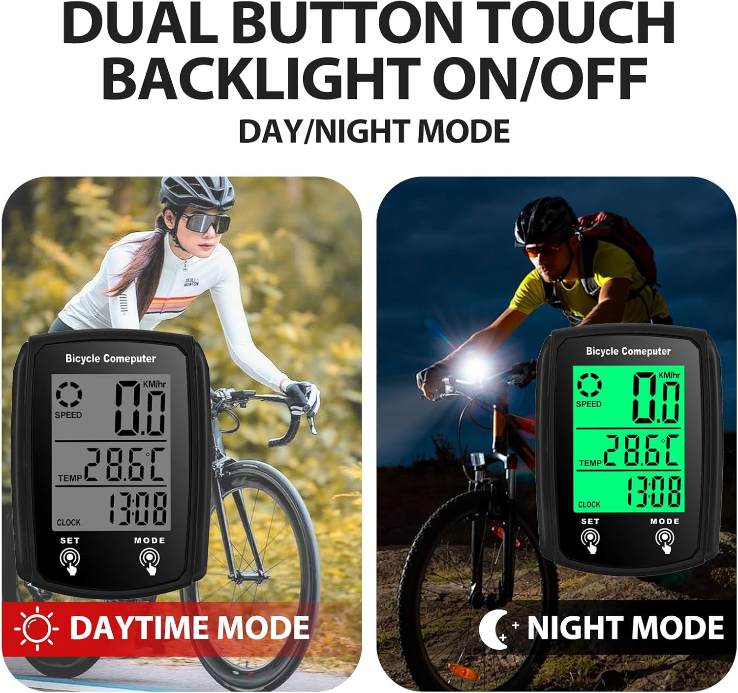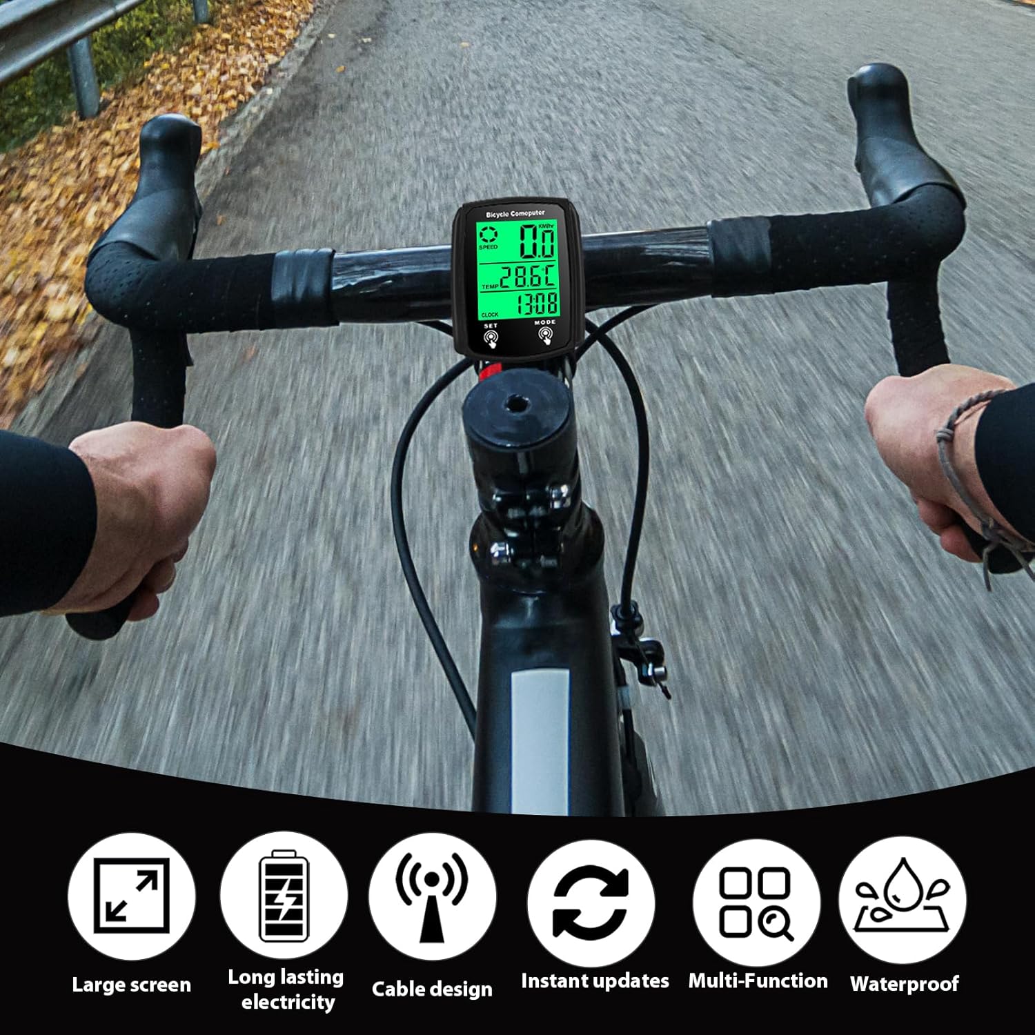 - Perfect bike riding accessory with 19 functions including current/max/average speed, odometer, trip distance, elapsed time, calories, temperature, scan, clock, and more.