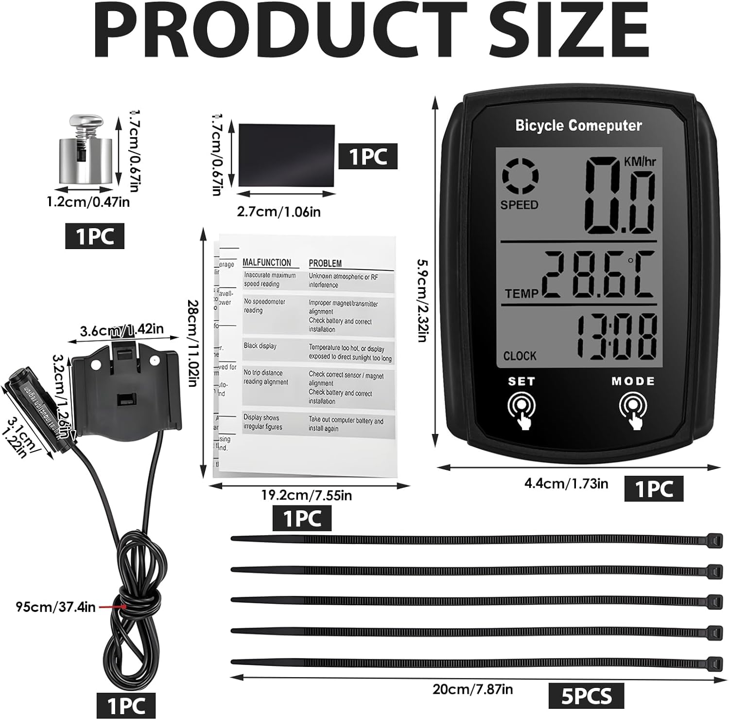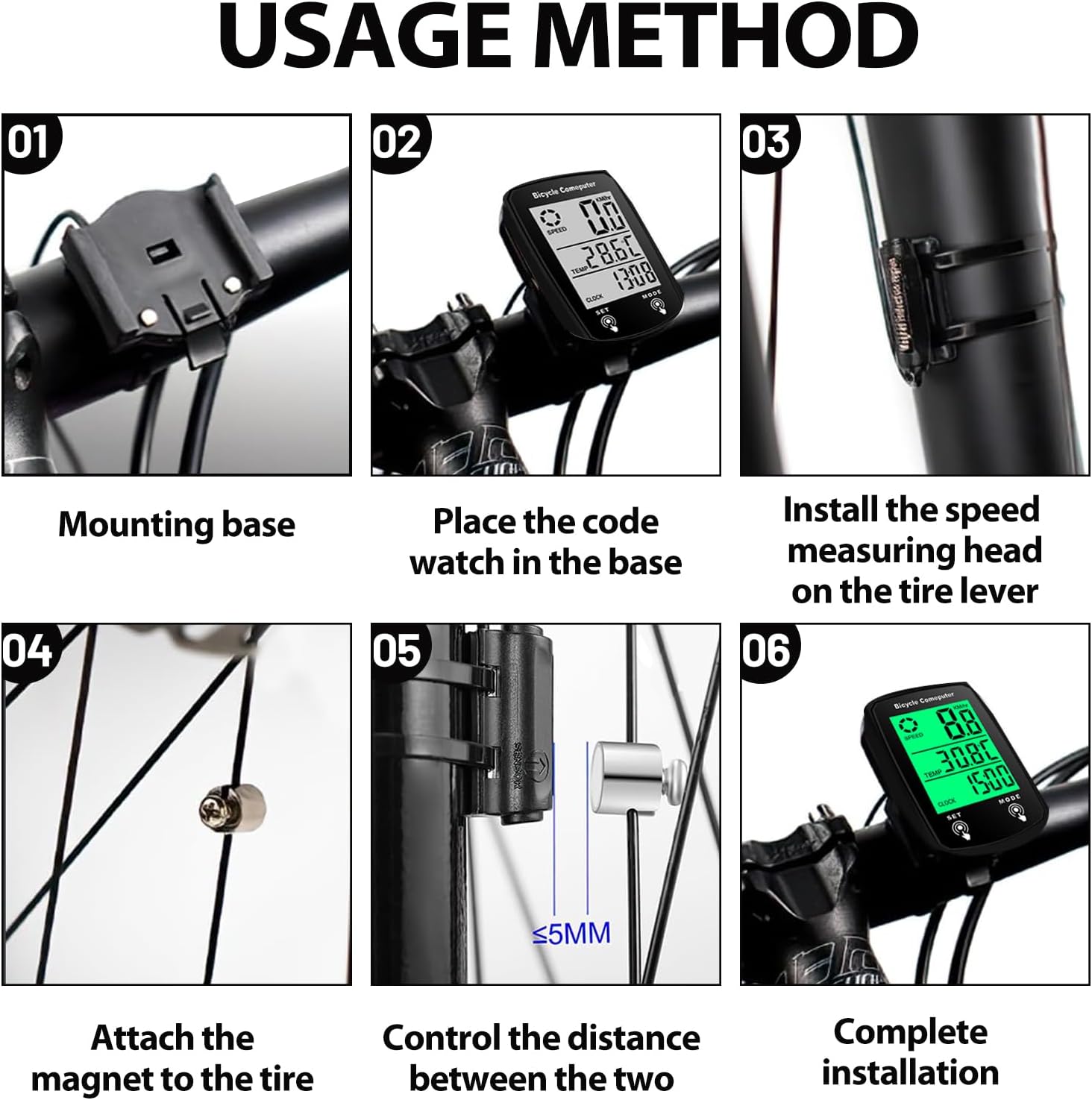 - Includes wired sensor, magnet, non-slip silicone base, and 5 nylon ties.