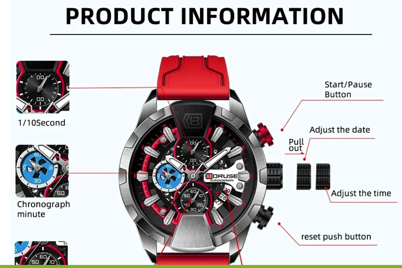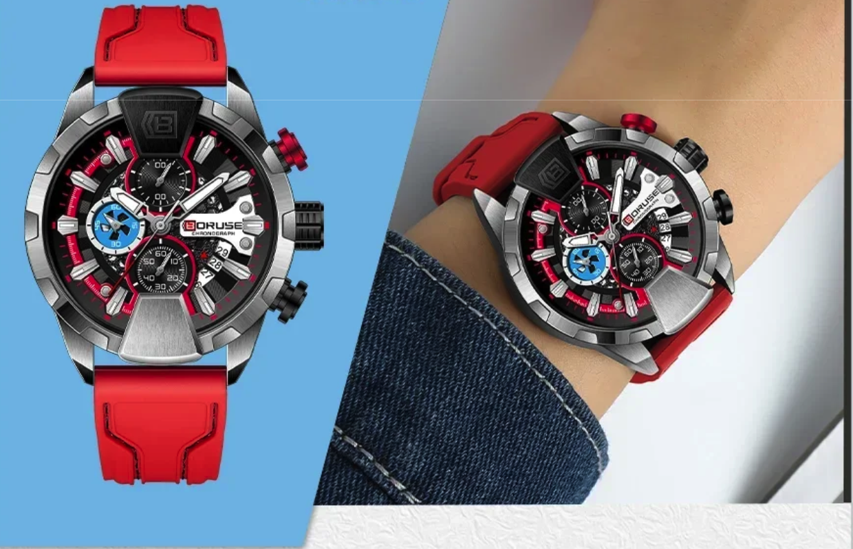 Elevate your style and functionality with the BORUSE Men’s Chronograph Watch. Designed for modern men who value both fashion and practicality, this wristwatch combines a sleek red design with waterproof durability, making it perfect for business, casual, or outdoor use.