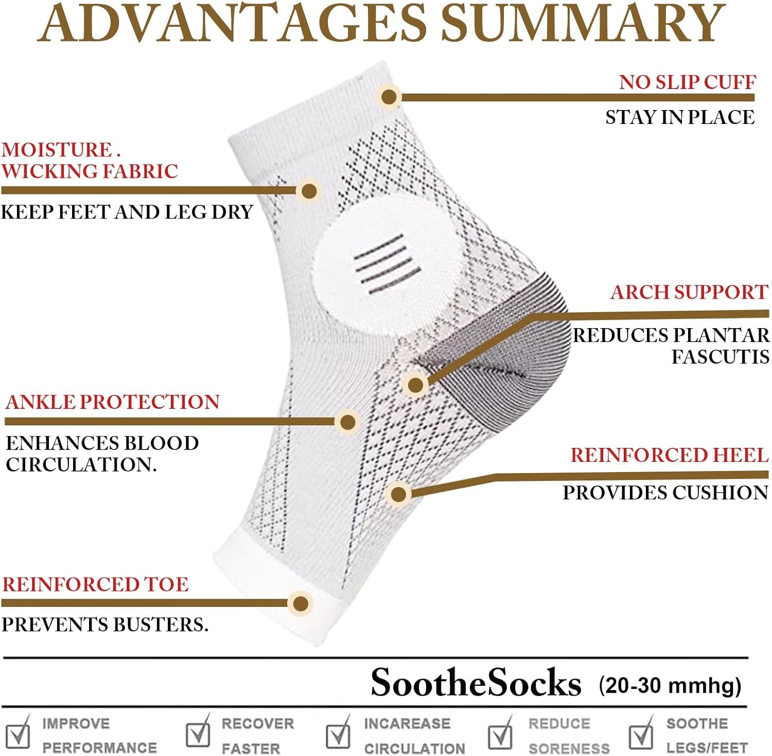 NEW NEUROPATHY SOCKS: Its unique design provides comfort and support to help relieve pain and discomfort caused by neuropathy, including plantar fasciitis, achilles tendinitis, flat feet, neural burning, foot pain, arthritis, heel tenderness , heel spurs, soft legs, swelling.