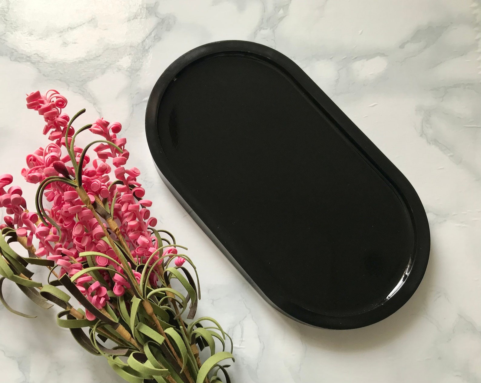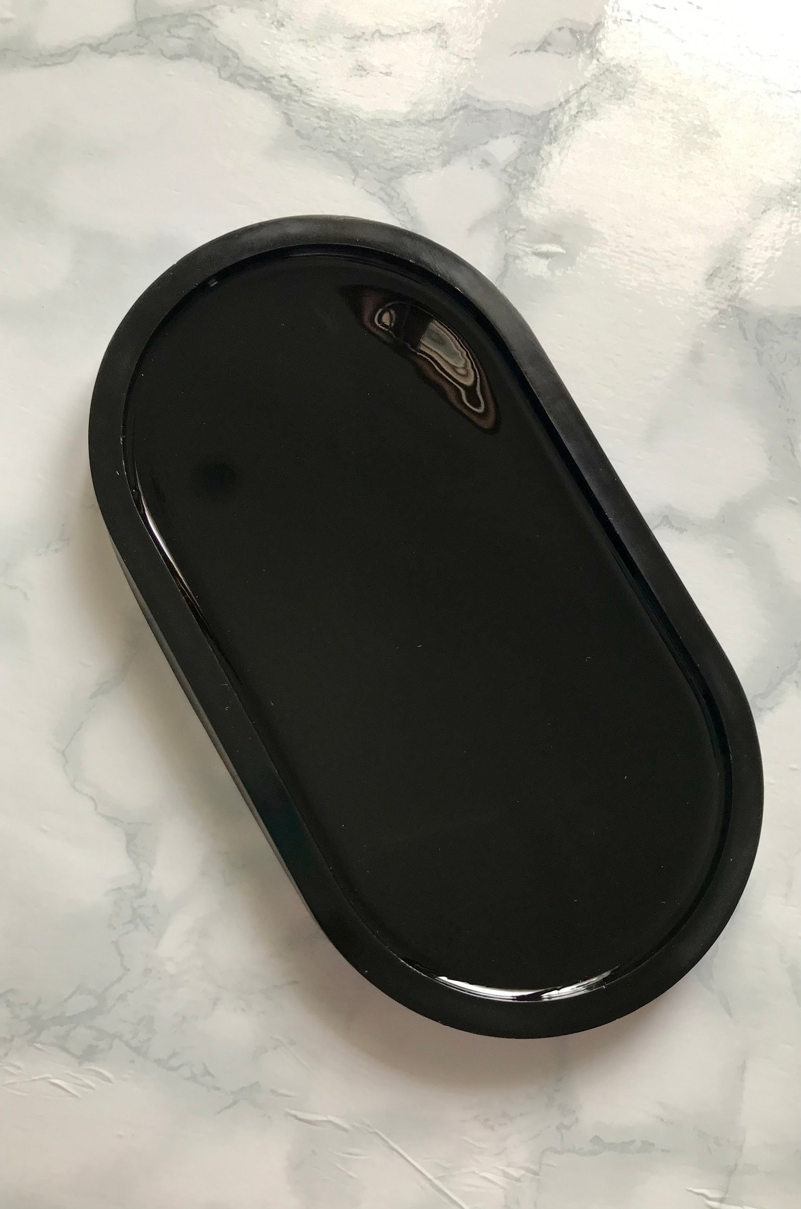 Black Bathroom Vanity Tray OvalToilet Tank Top Tray Non Slip, Resin Storage Dish