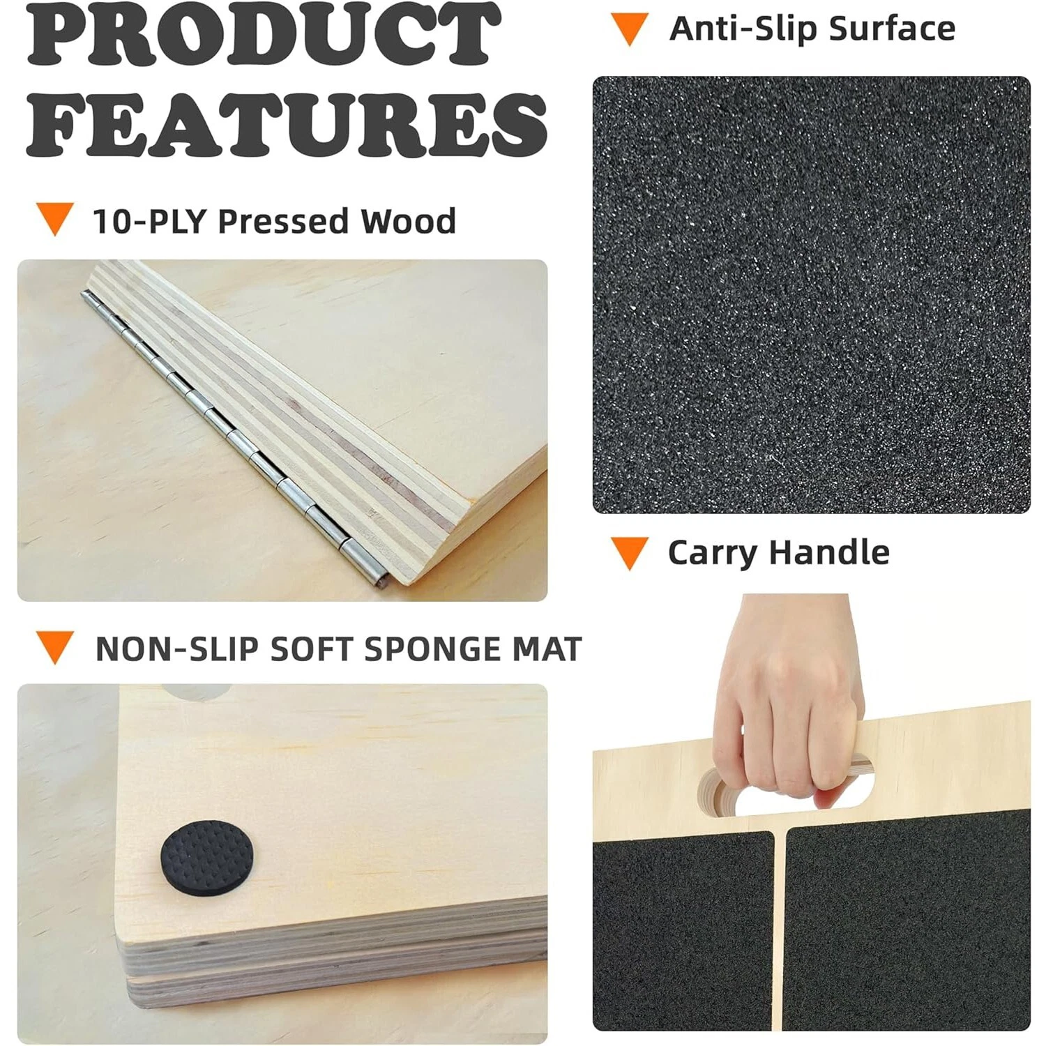Lightweight and portable - The slant board is foldable and measures 39.8cm/15.67 inches long, 29.8cm/11.73 inches wide, 3.5cm/1.38 inches thick, and weighs 4.8 pounds.The top is designed with a hollow handle. Whether you are doing stretching exercises in the office, at home, in the gym, or outdoors, this slant board is very easy to carry and store. Adjustable Stretch Board for Stretching - ThisCalf Stretcher Slant Board for squats provides 5 adjustable angles: 20°, 30°, 35°, 40°, 45°, which can adapt to different fitness levels and stretching training needs, adding diversity and challenge to your exercise plan Heavy-duty support - The calf stretch board uses thickened multi-layer solid wood, which is durable and can withstand a load of about 380 pounds. The triangular structure is more stable and safe, which is very suitable for beginners, professional fitness people and all types of people Multi-function calf stretcher - This calf stretcher slant board helps to stretch the calf, buttocks, heels, ankles, etc. It is an excellent auxiliary tool for front and back leg stretching; it also helps to improve core strength, improve body flexibility, and improve muscle flexibility and mobility Anti-slip incline board - The wooden Calf Stretcher slant board adopts an enlarged panel design, with anti-slip sandpaper on the surface and an anti-slip pad at the bottom, which can increase friction and prevent movement, bringing a more assured use experience
