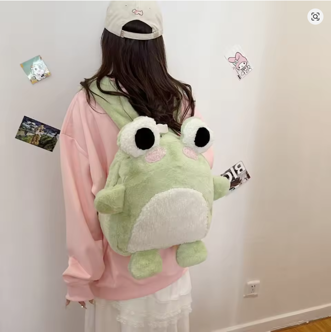 Women Cute plush frog backpack 2024 girl funny cartoon school bag small shoulder bag colour: Big