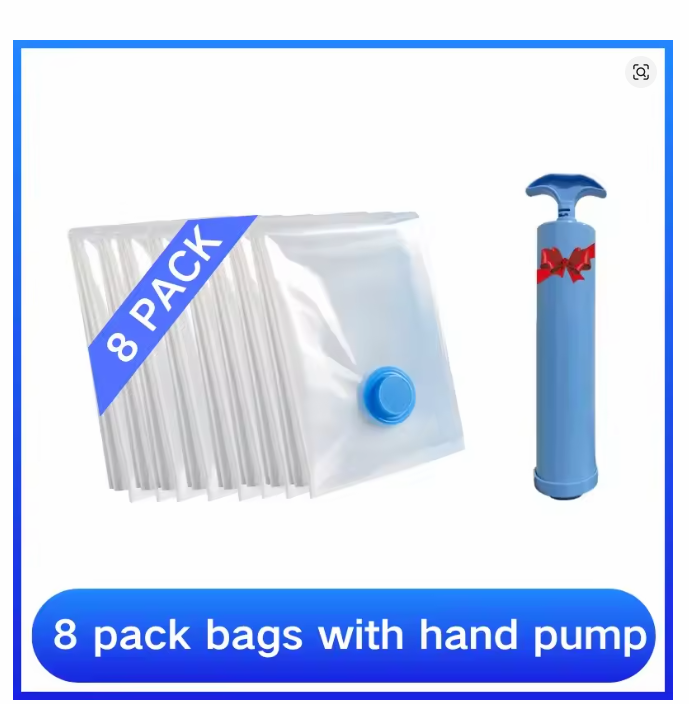 8PCS Vacuum Bag and Pump Cover for Clothes Storing Large Plastic Compression Empty Bag Travel Accessories Storage Container