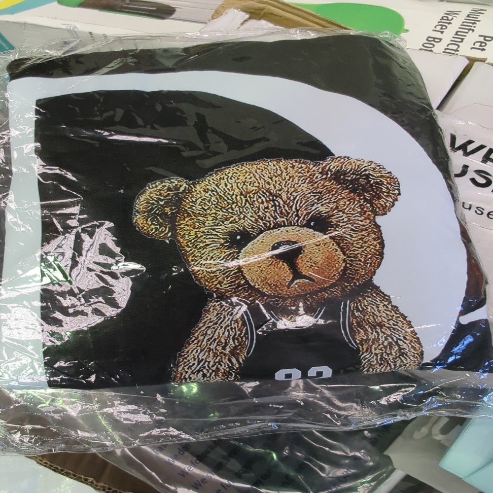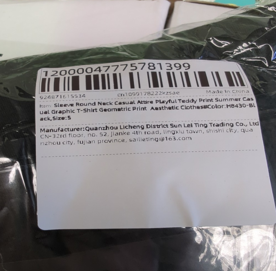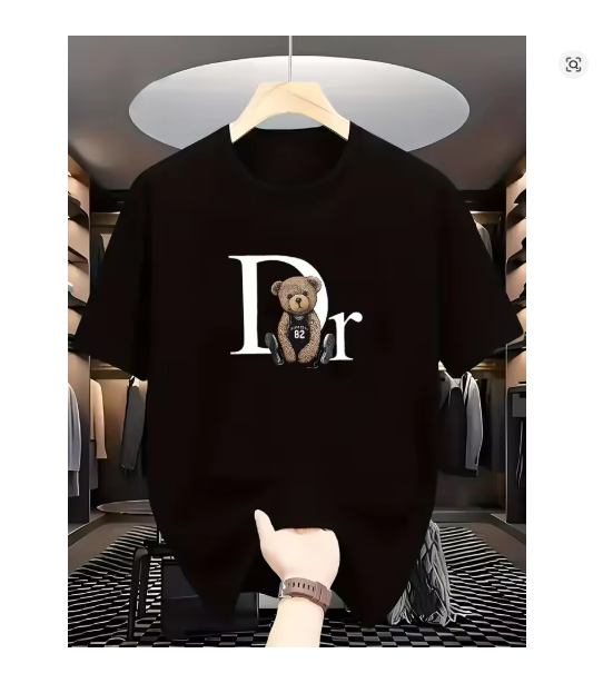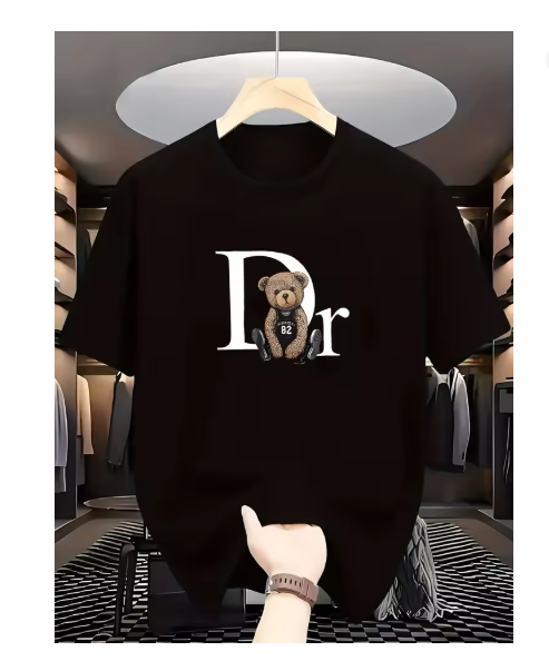 Size S H8430-Black Sleeve Round Neck Casual Attire Playful Teddy Print Summer