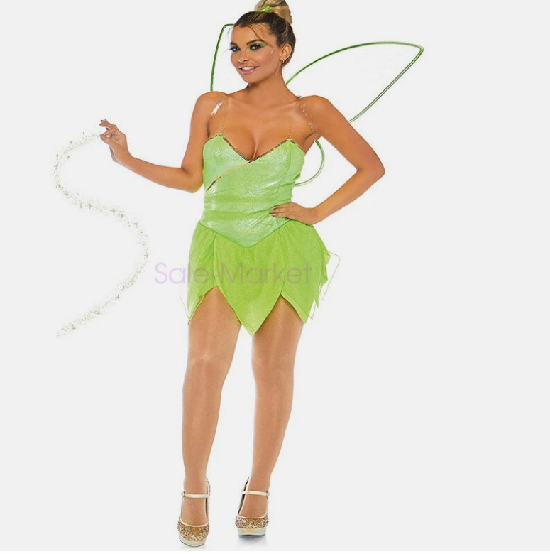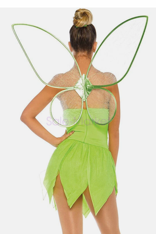Adult Green Neverland Pixie Fairy Tinkerbell Fancy Dress Costume With Wings SALE Colour: Green Size: L