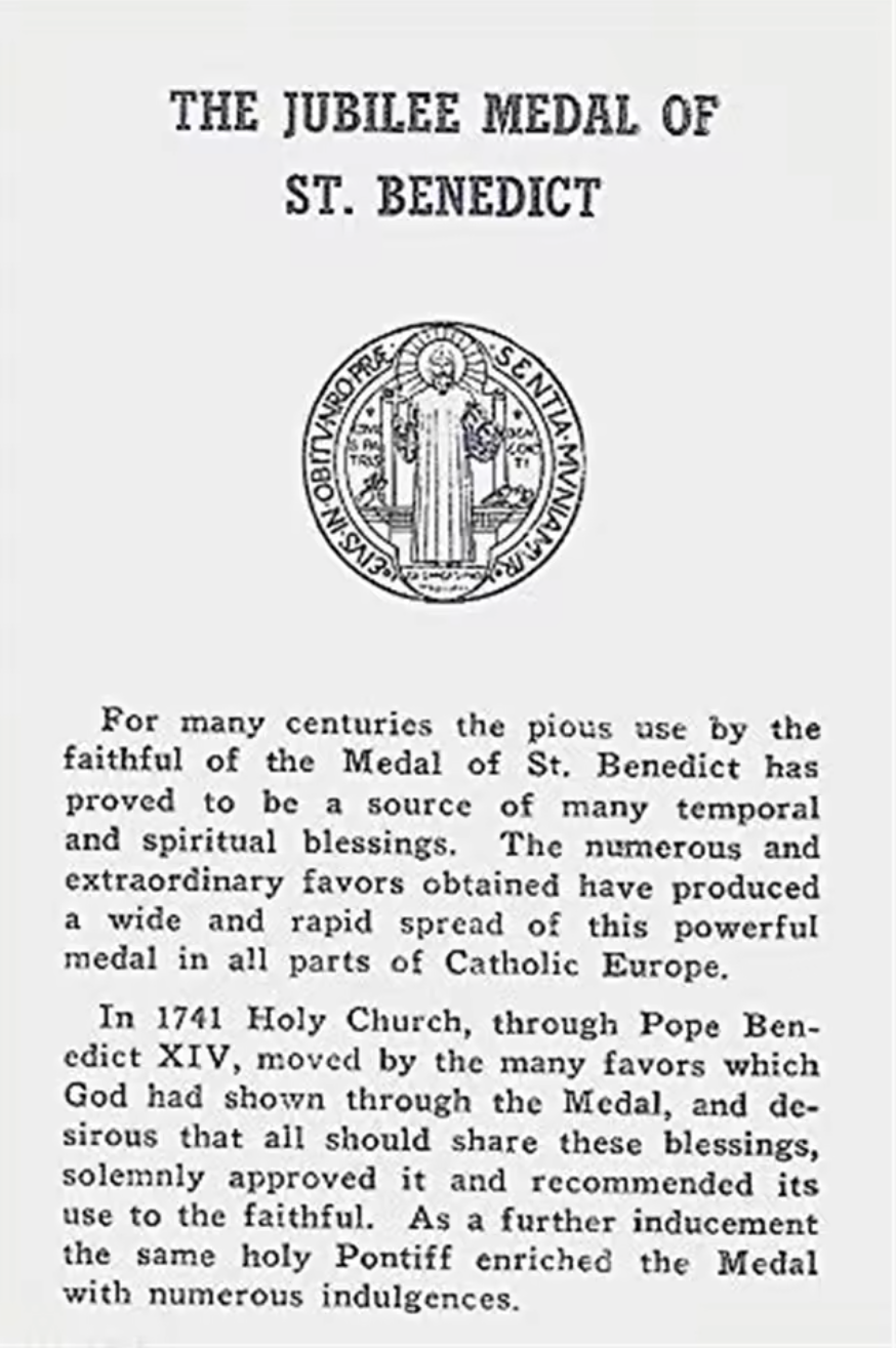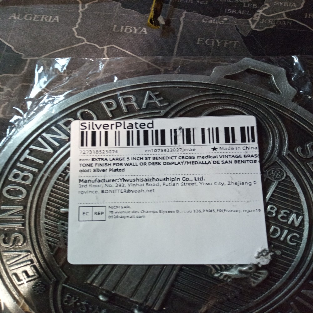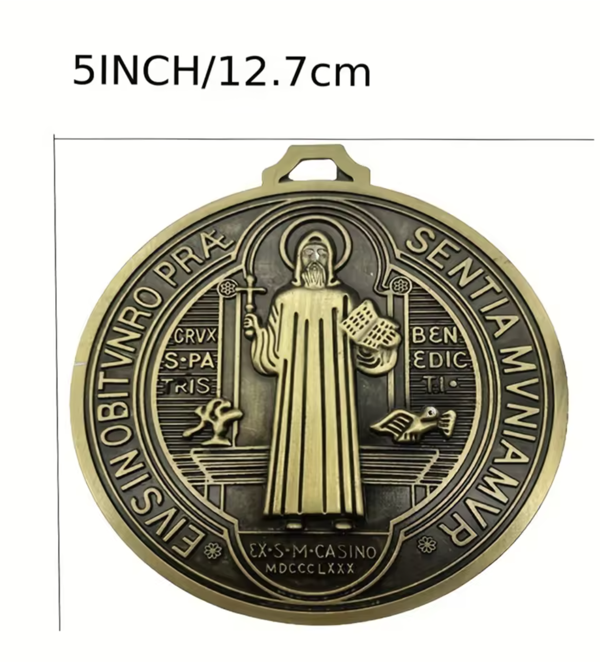Silver Plated 5 Inch St Benedict Cross Medal Vintage Brass Tone Display