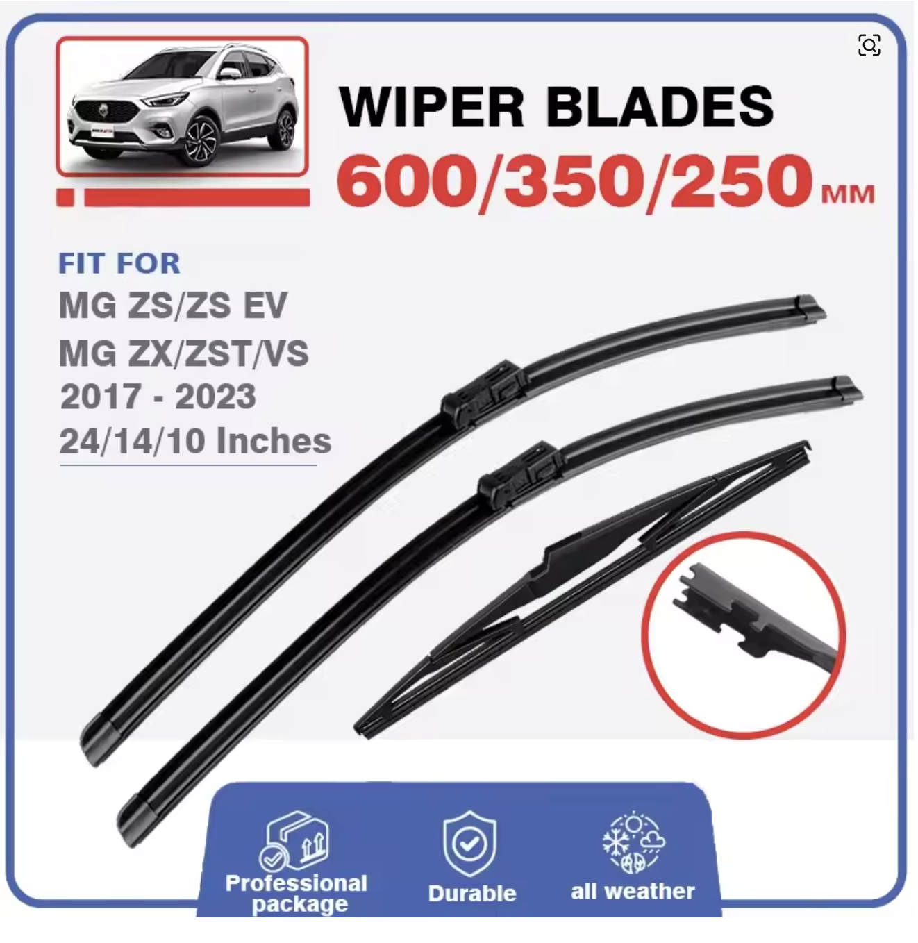 RHD Front Rear Wiper Blades for MG ZS 2017-2024 24" 14" 10" Frameless Soft Rubber