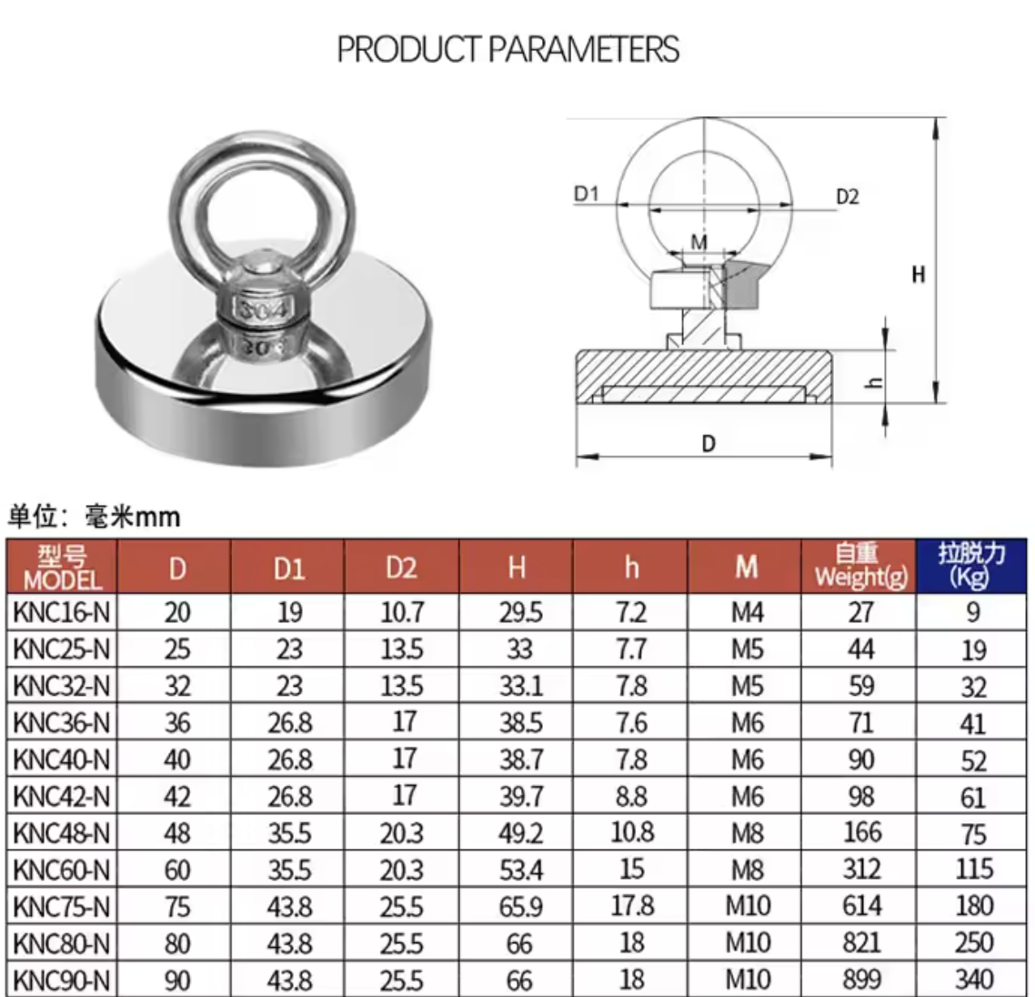 D16 5kg Neodymium Fishing Magnet Heavy Duty Rare Earth with Eyebolt
