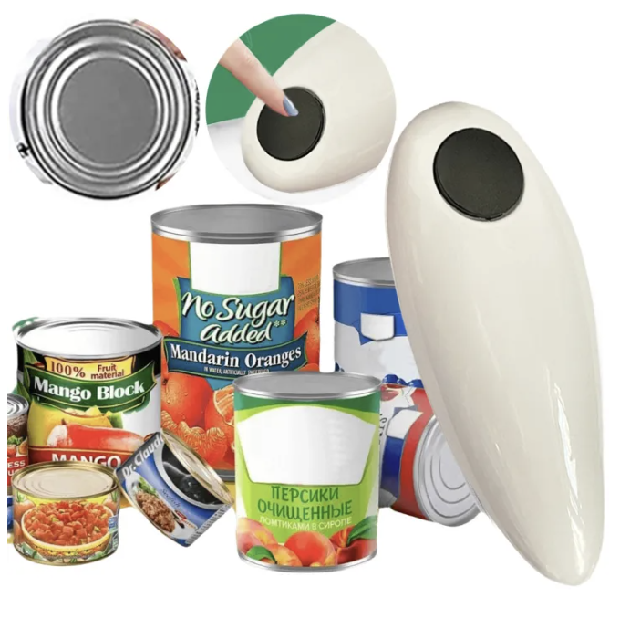 White Electric Can Opener Automatic One Touch Battery Operated Tin Opener