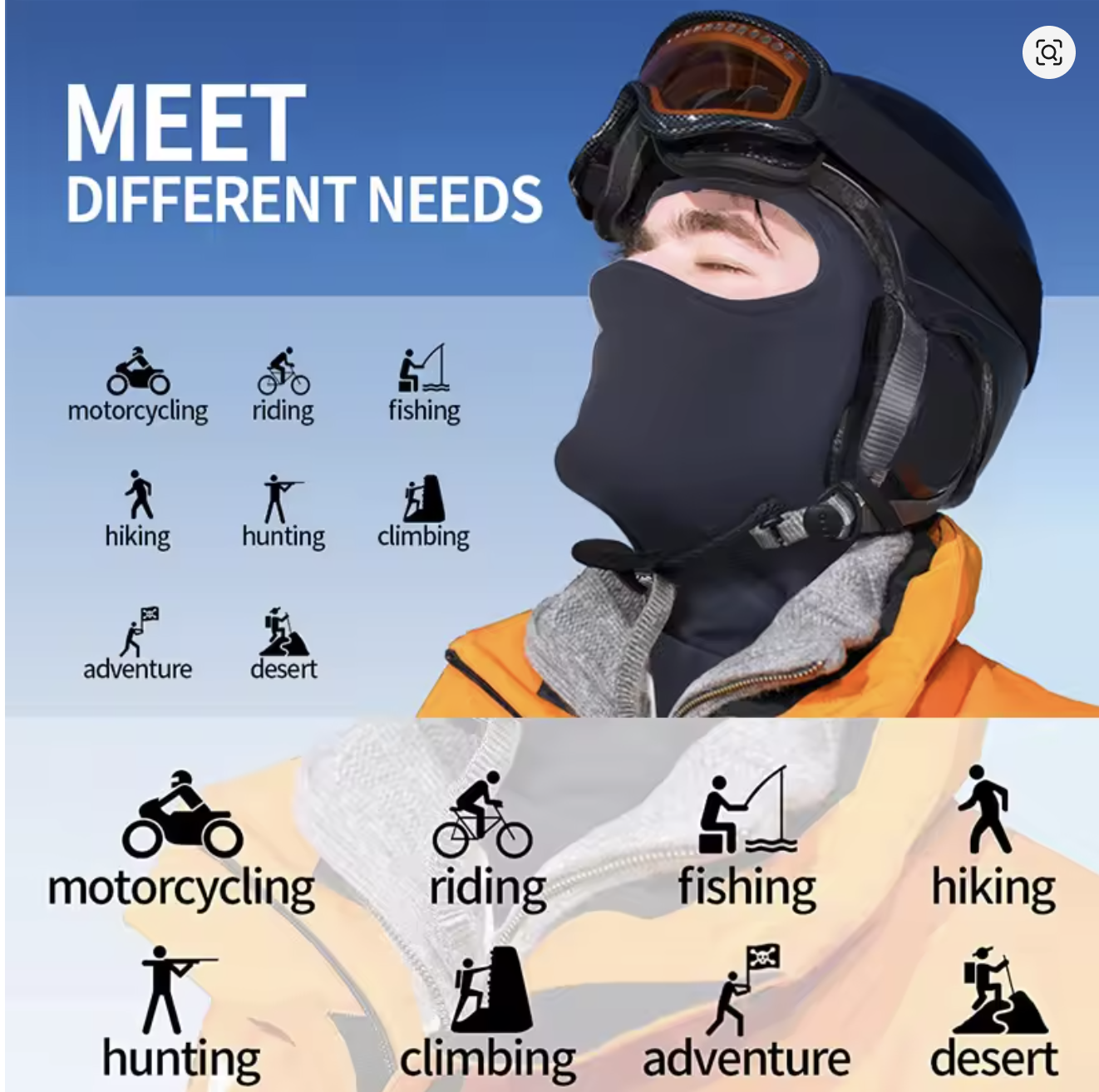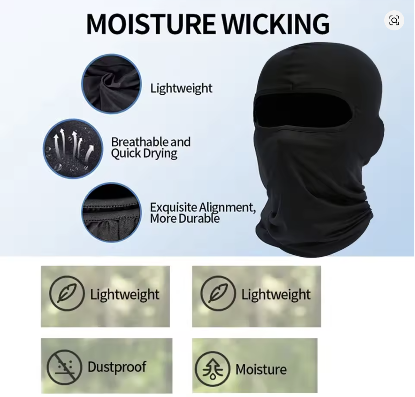 CS1-A Black Ski Mask Balaclava Full Face Cover with Neck Gaiter, One Size