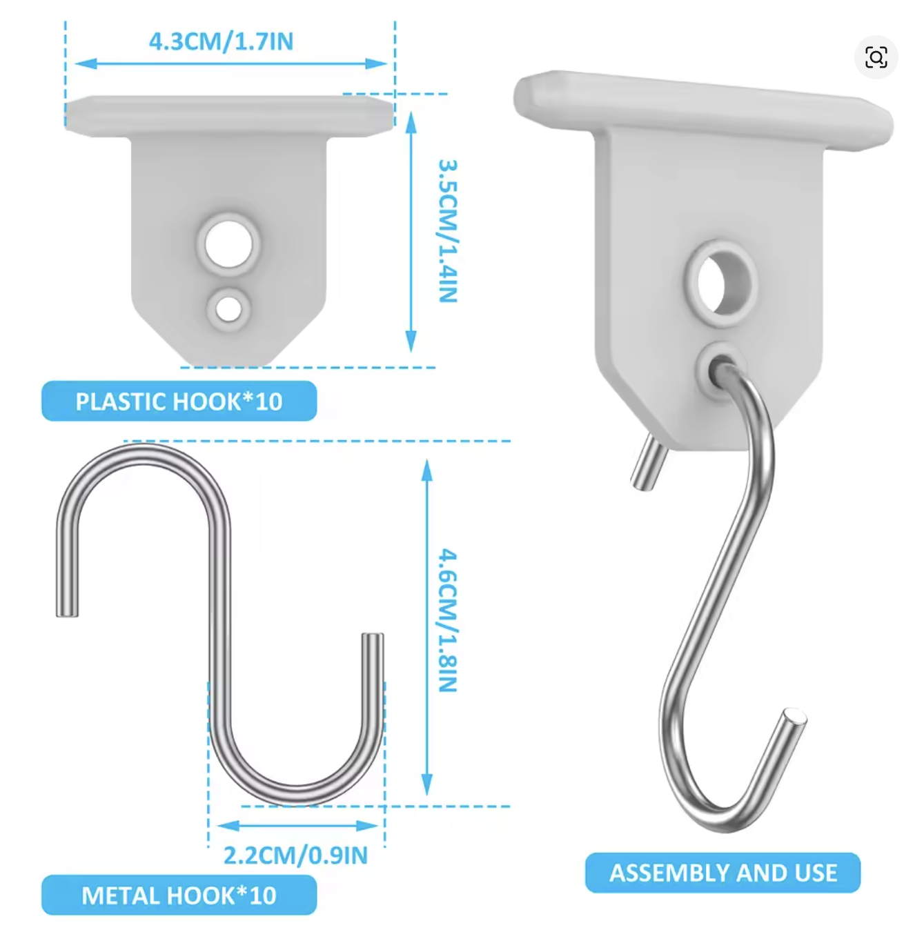 S-shaped design for hanging awnings, lights, hats, and accessories