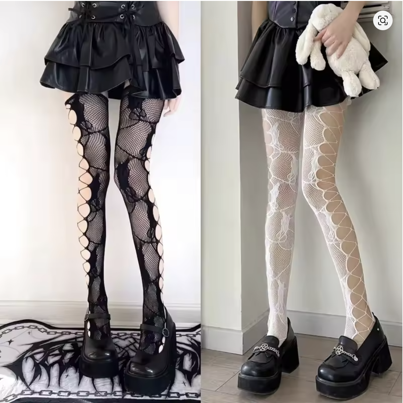 G-1-6 01 Women's Hollow Jacquard Fishnet Tights Floral Lace Thigh-High Stockings