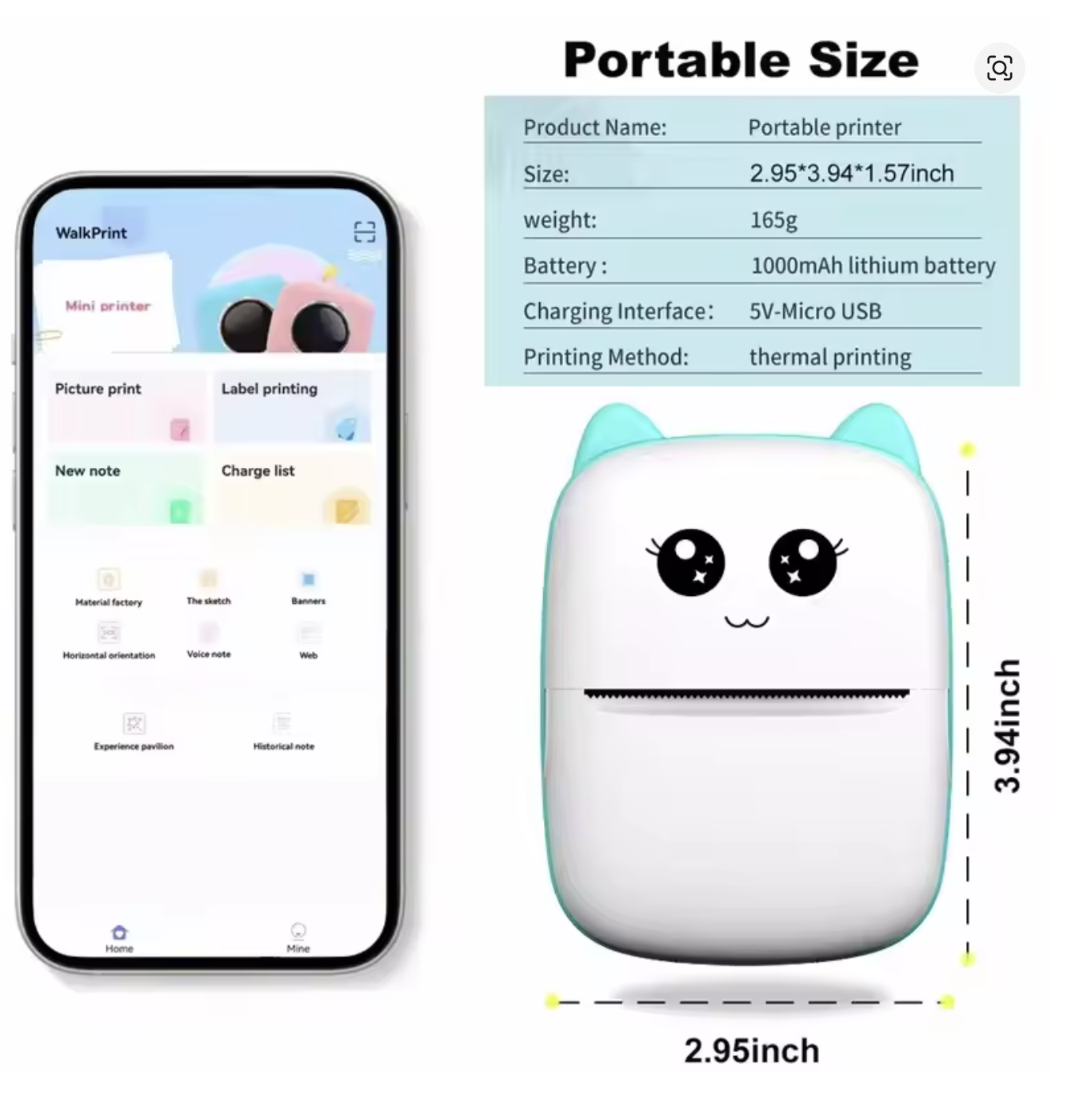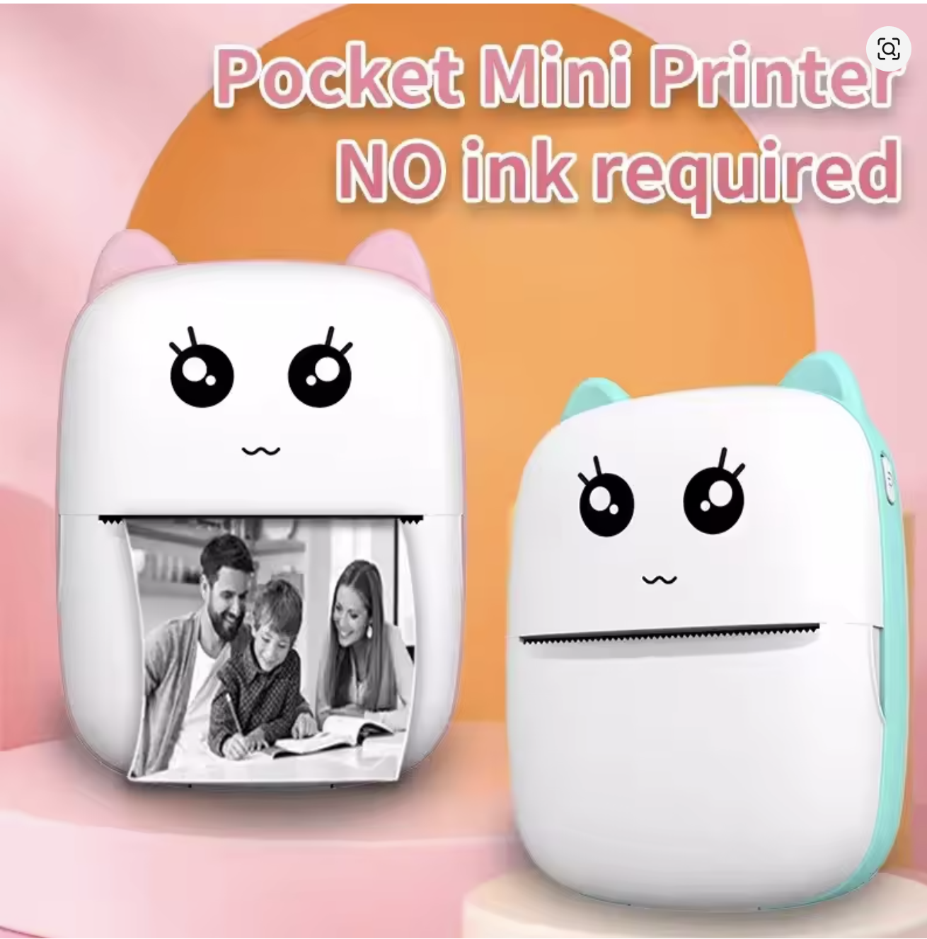 Pink Mini Cat Portable Thermal Printer 58mm Bluetooth Label & Photo Printer