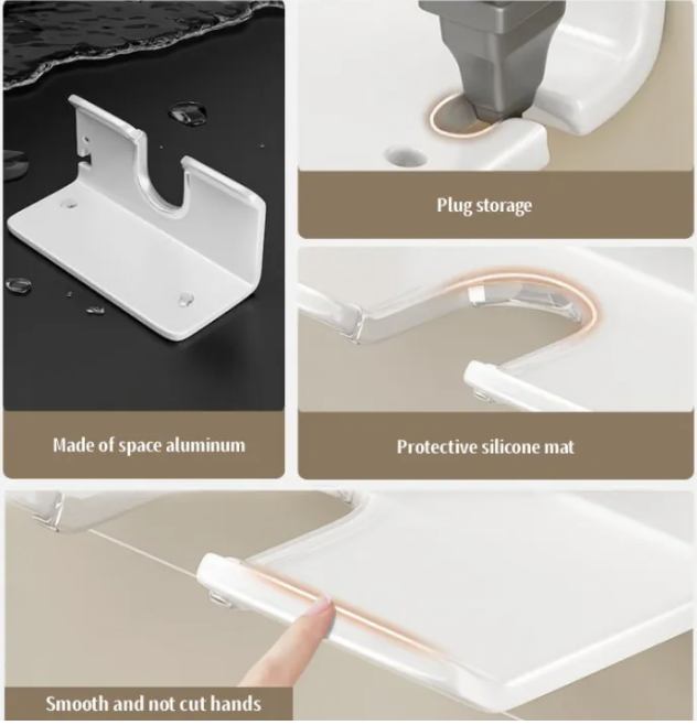 White C1 Wall-Mounted Hair Dryer Holder Stand Organizer for Bathroom