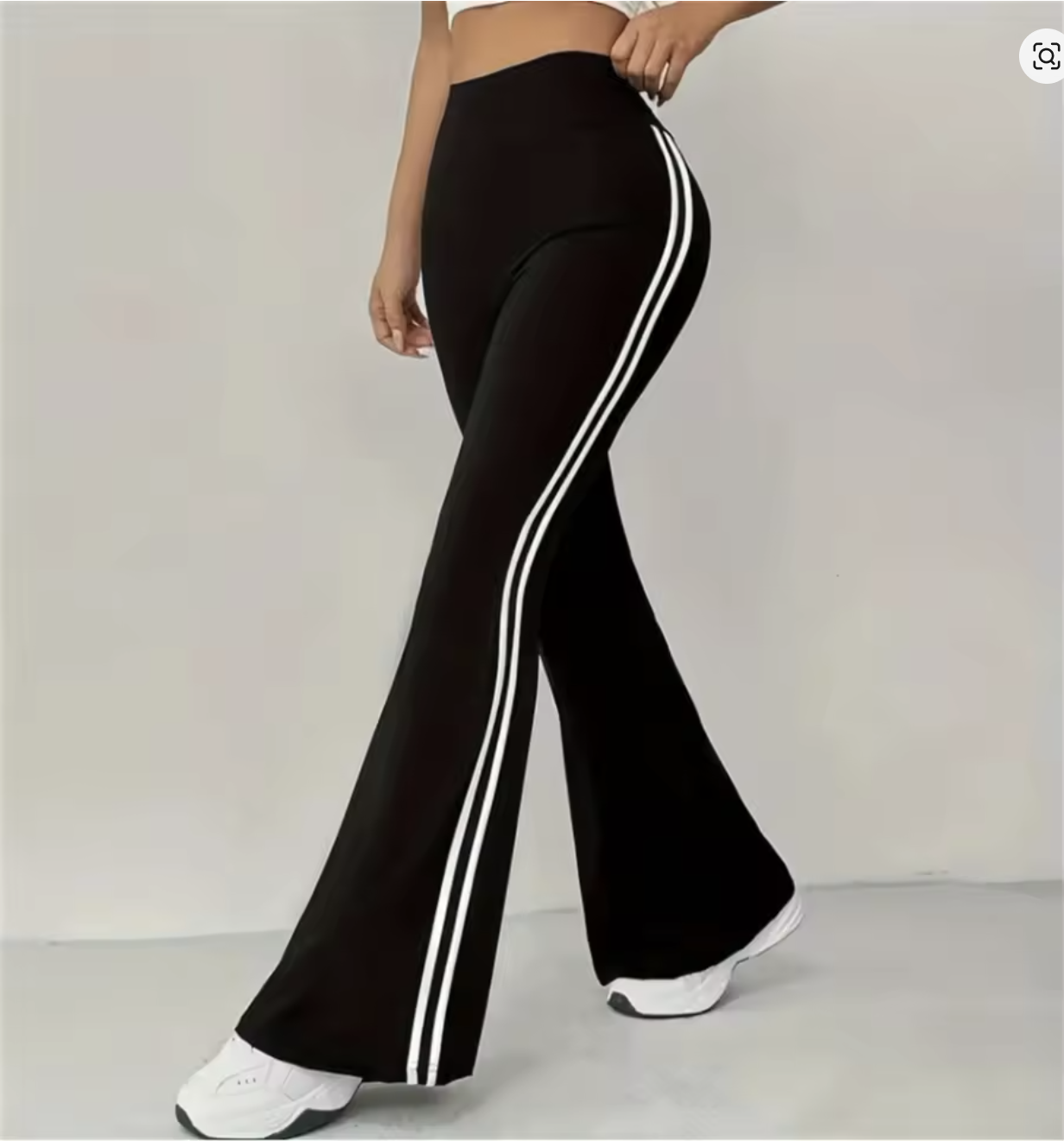 Black Women’s Slim High-Waist Flare Pants M, Casual Micro Pull Trousers