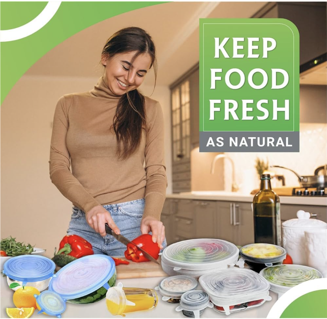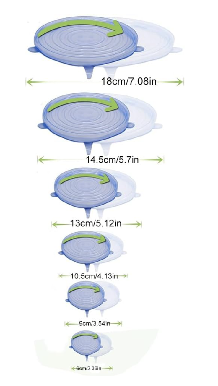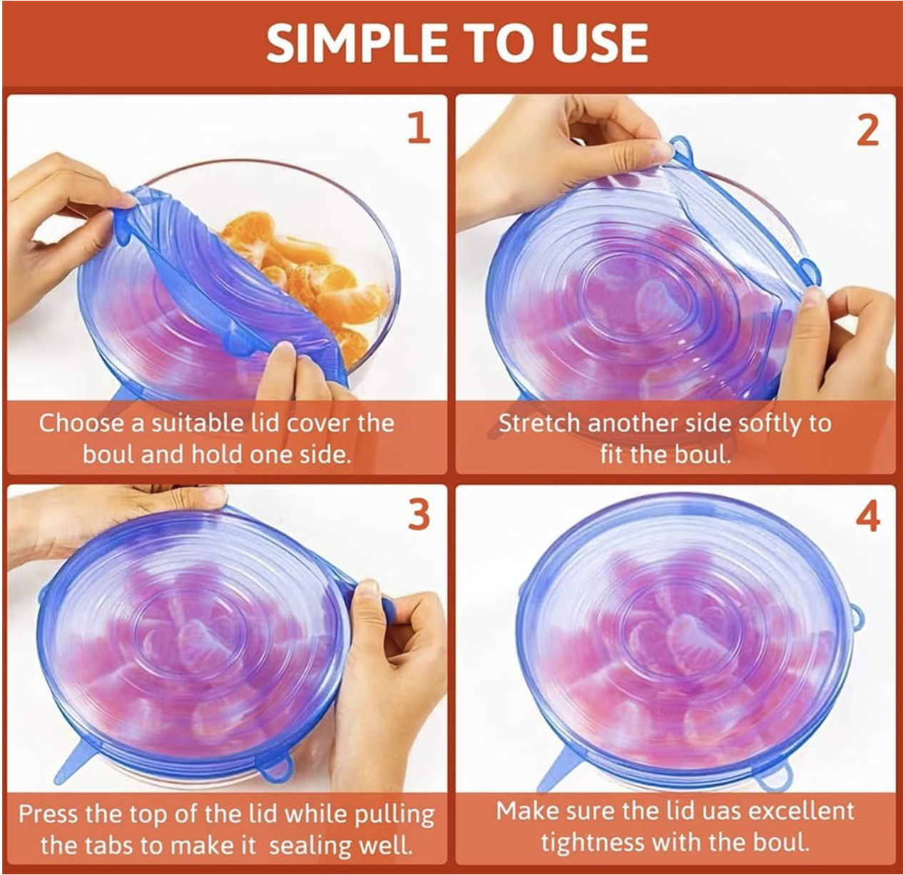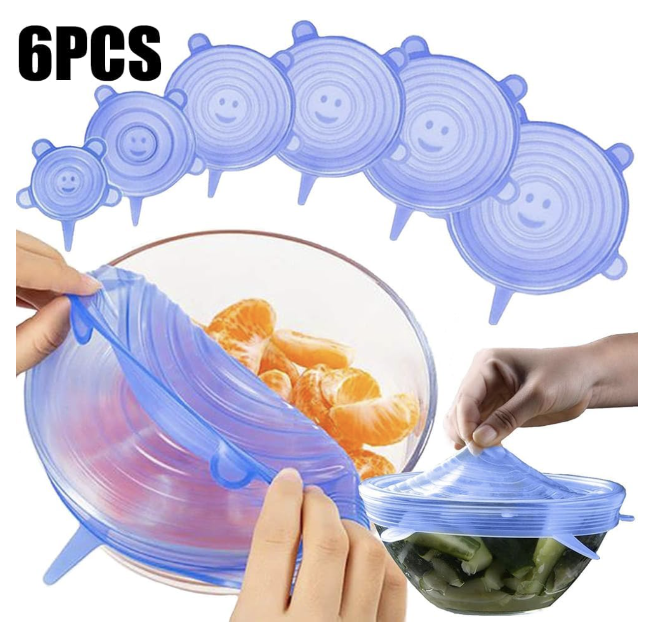 Blue 6PC Food Grade Silicone Stretch Lids Reusable Airtight Covers for Dishes