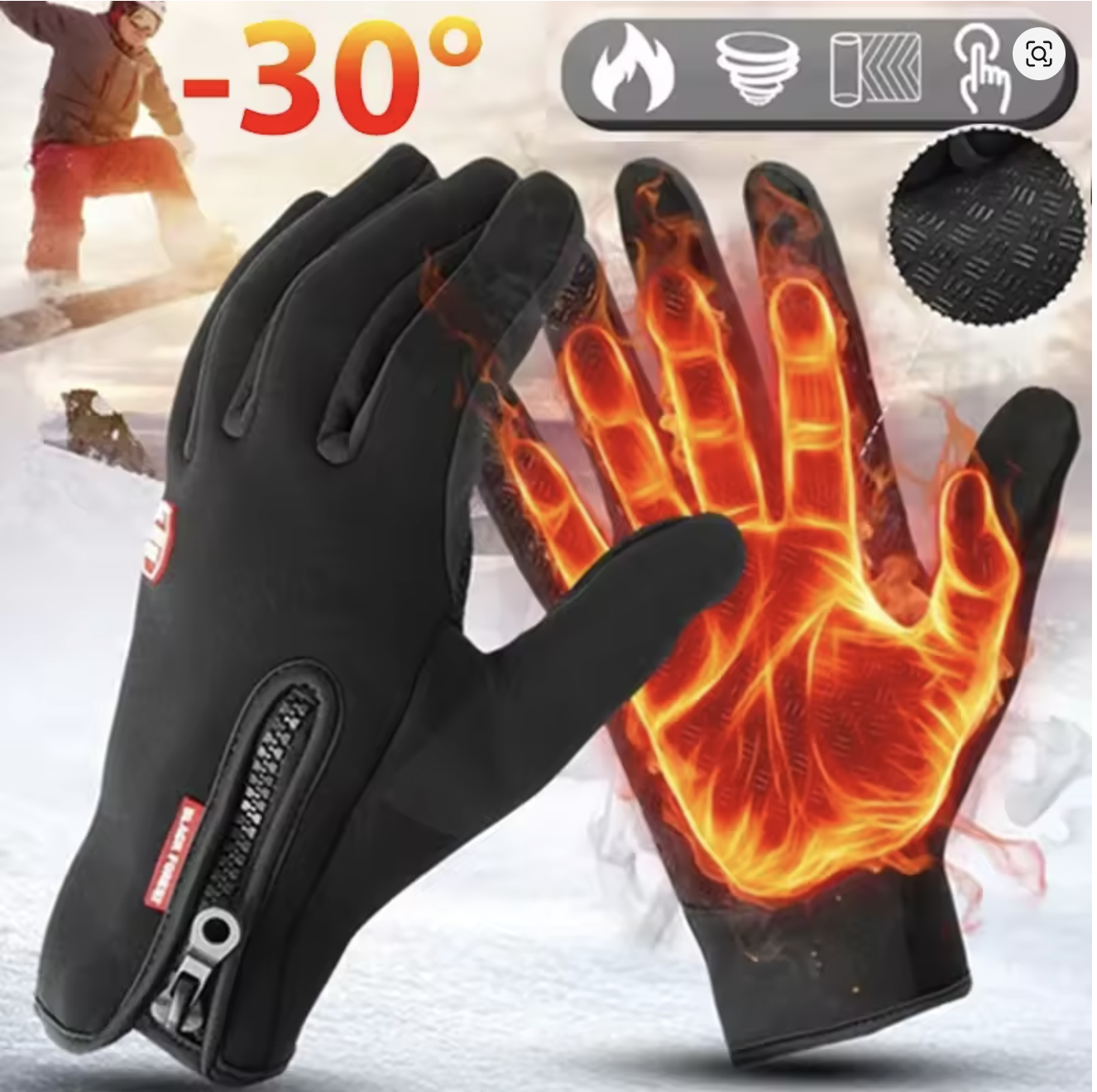 Black L Men’s Winter Gloves Waterproof Windproof Touchscreen Zipper Cold Gloves