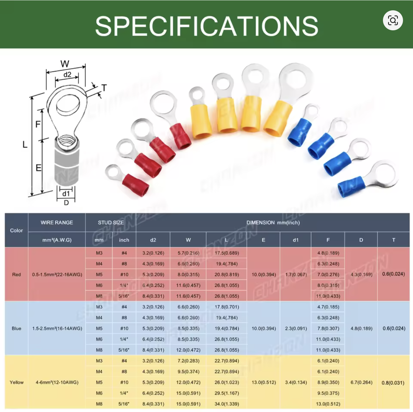 100PCS RV2-3 Electrical Ring Crimp Wire Terminals Connectors Cable Kit