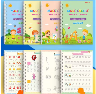 4pcs Magic Groove Practice Copybook Pen Preschools English Verison Kids Calligraphy Children Reusable Writing Book Free WipingColor: 4PCs sets