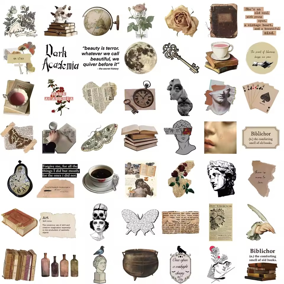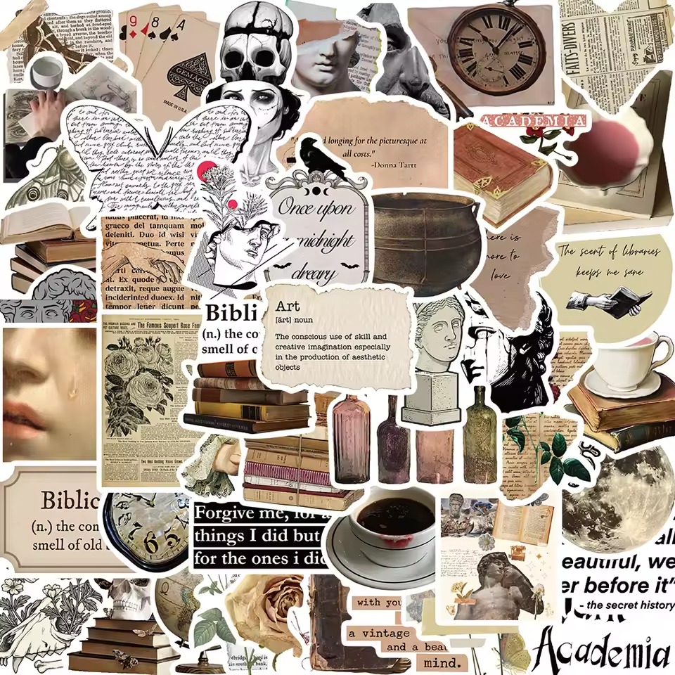 50pcs Retro Style Dark Academia Art Aesthetics Series Graffiti Stickers For Helmet Desktop Wall Decoration DIY StickersColor: 50pcs