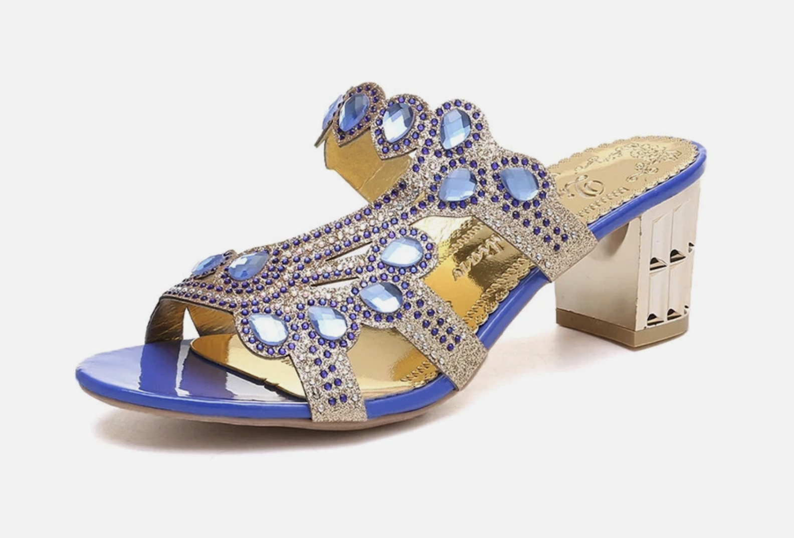 • Features: Rhinestone decoration, chunky heels, hollow design