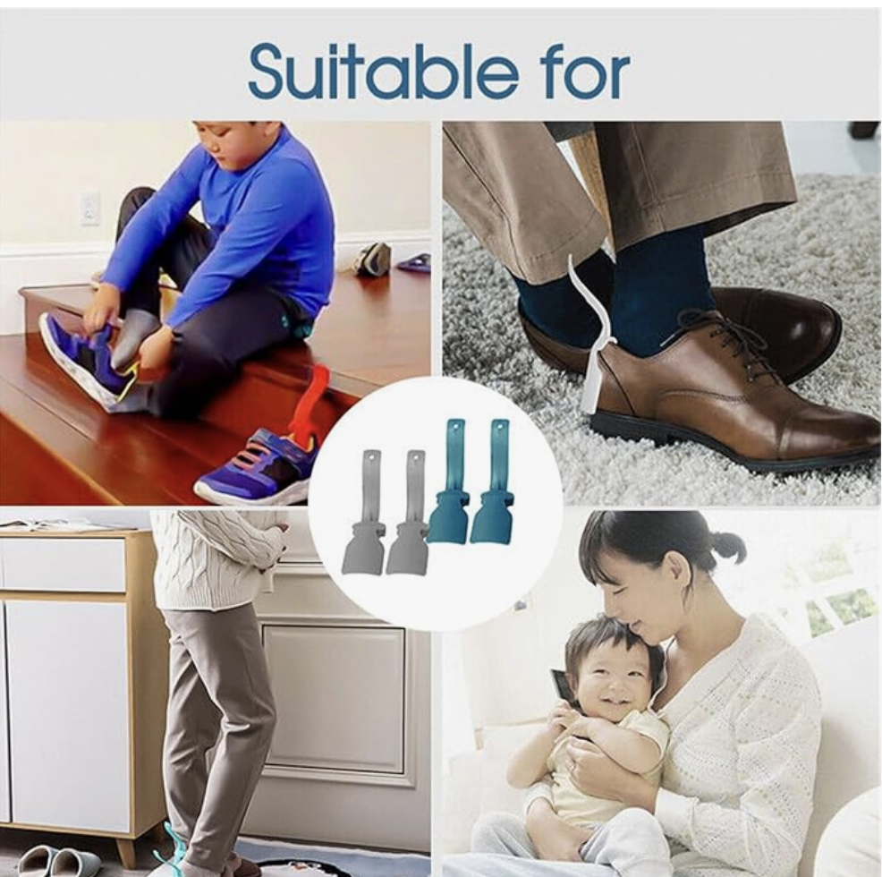 White 1 Pair Lazy Shoe Helper – Portable Sock Slider & Short Shoe Horn