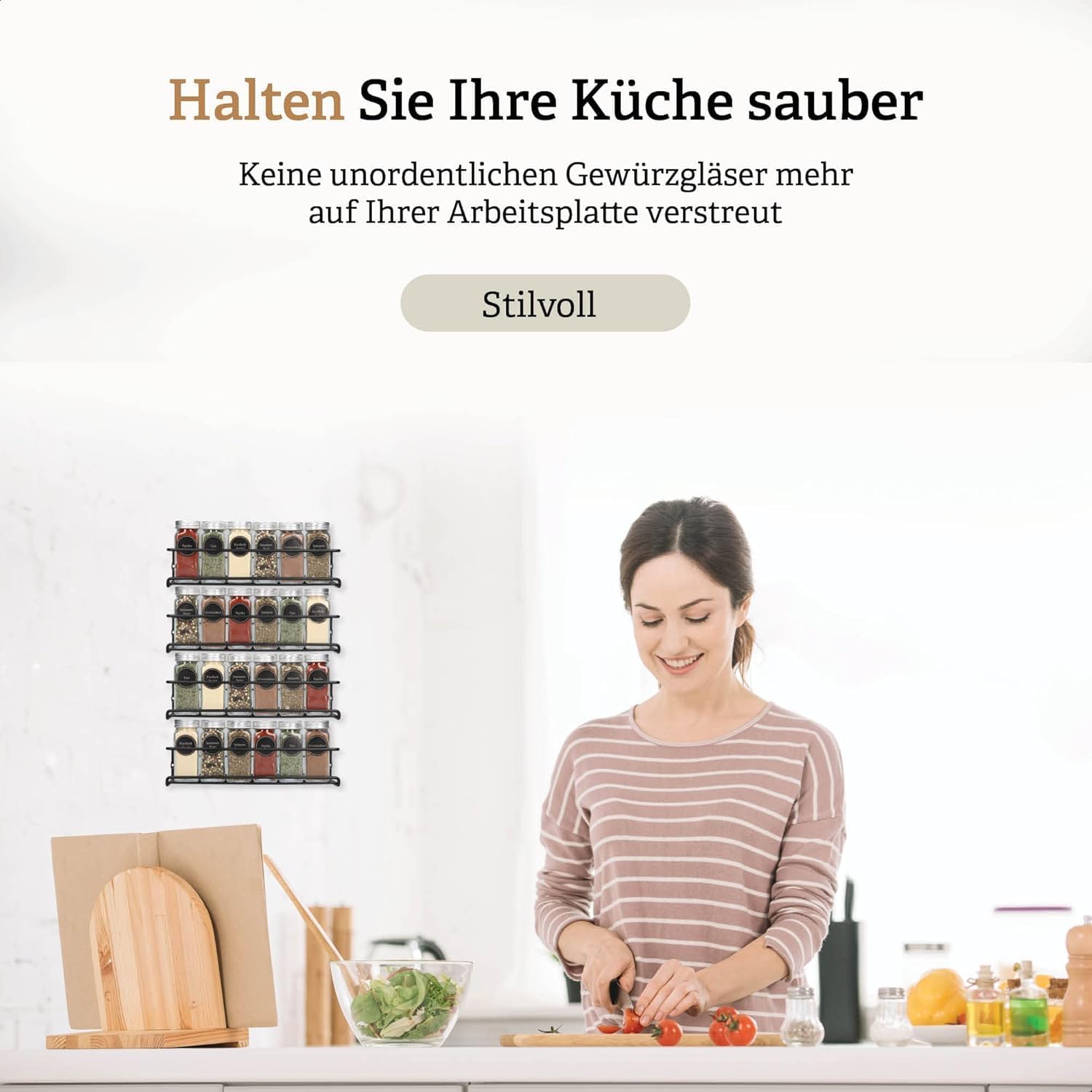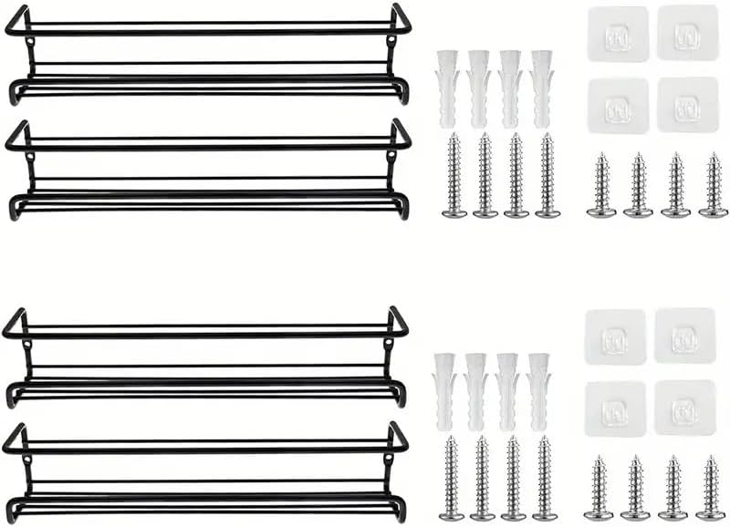 Upgrade your kitchen with this 4-tier adjustable spice rack organizer, designed for wall mounting, pantry doors, or inside cabinets. Perfect for maximizing storage and keeping spice jars neat, this hanging spice rack is ideal for modern kitchen organization.