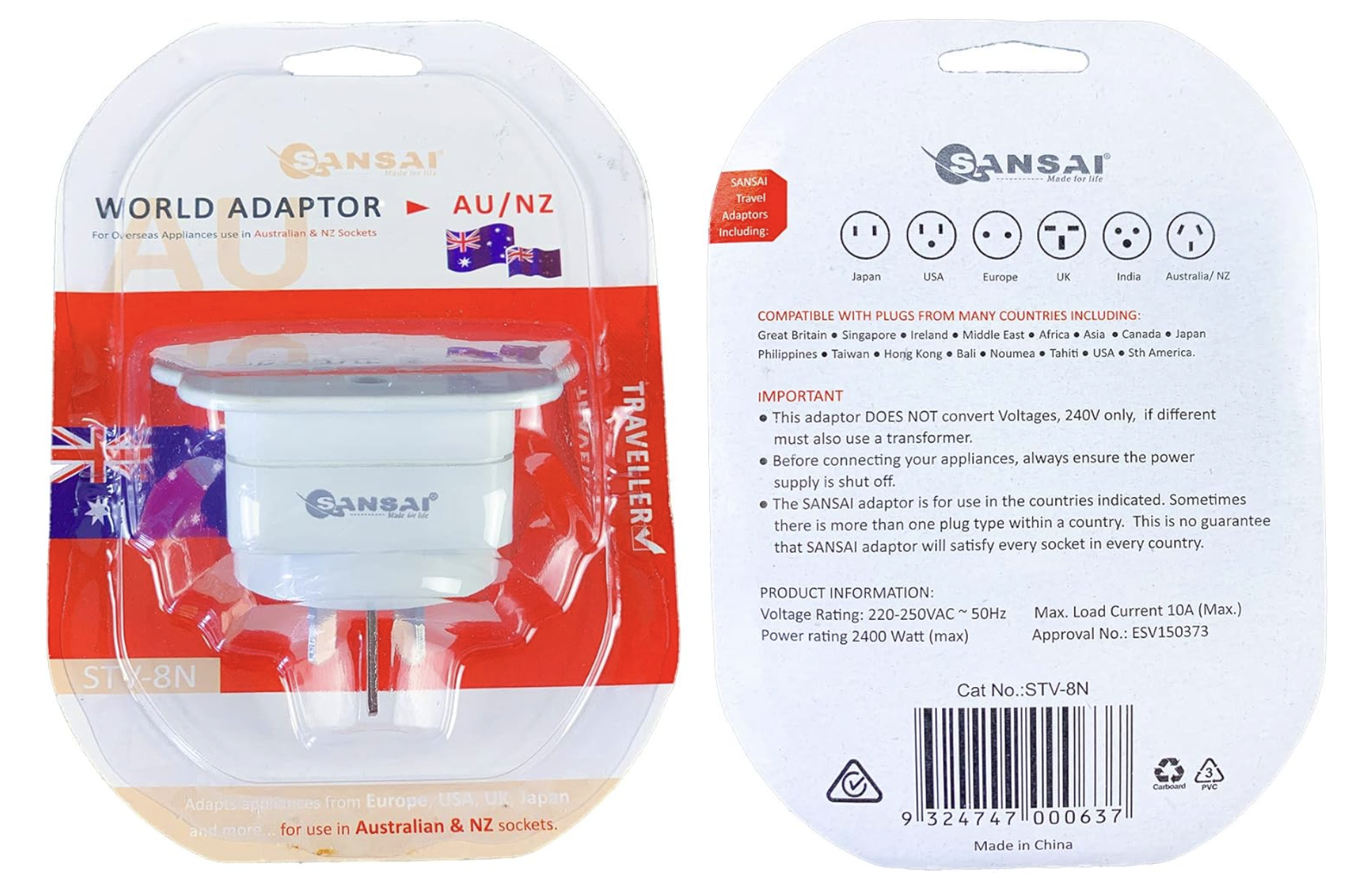 Universal Travel Power Adapter – UK/EU/US/CA to AU/NZ Plug