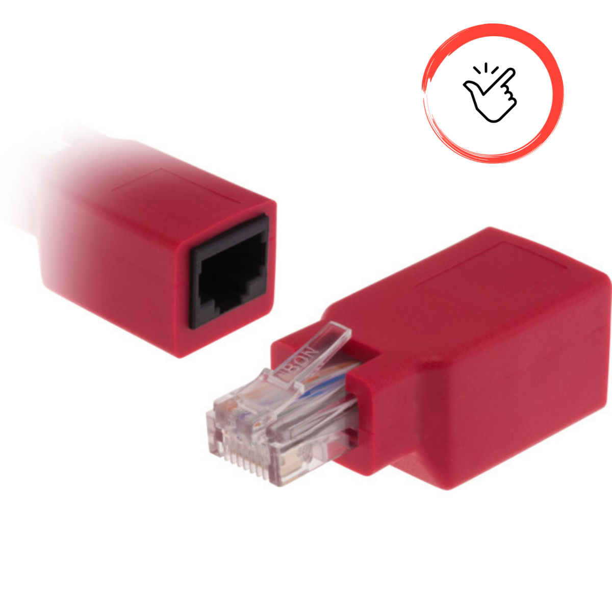 Features Use this adapter to connect two computers directly via Ethernet when only a patch lead is available. Great for times when you want to copy files directly between computersin different rooms and the fixed network is straight-throughcables only! Features Suitable for CAT6 patch leads and speeds RJ45 socket to RJ45 plug Colour: Red
