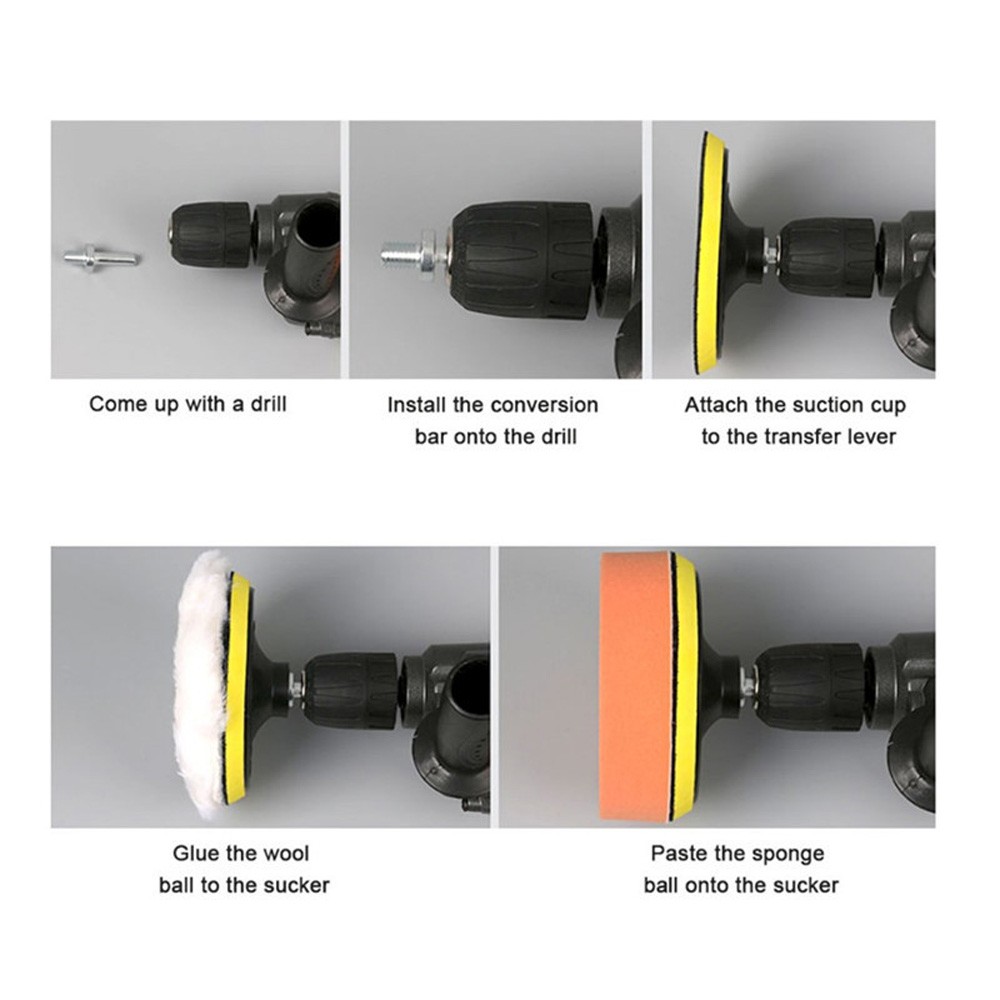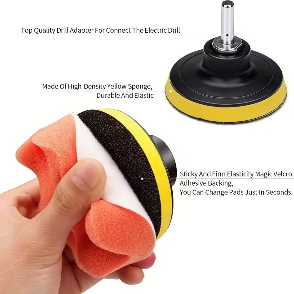 ✅ Key Features: Complete 22-Piece Set: Includes multiple sponge pads, wool pads, and backing plate adapters to meet all polishing and waxing needs. High-Quality Materials: Durable, soft, and reusable foam pads ensure long-lasting performance without scratching the paint. Universal Fit: Designed for use with most electric drills and rotary polishers – easy to attach and remove. Multi-Stage Polishing: Suitable for rough polishing, fine finishing, and final waxing for a deep, glossy shine. Versatile Use: Perfect for cars, motorcycles, boats, furniture, metal, and glass surfaces. ⚙️ Specifications: Pad Diameter: 6 inches (150mm) Material: Foam Wool Plastic Backing Plate Compatible Tools: Drill or polishing machine Use For: Car waxing, buffing, sealing glaze, scratch removal, and final shine