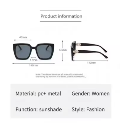 New Fashion Brand Designer Sunglasses Women Vintage Rays Mirror Square Party Travel Luxury Letter Shades Sun Glasses UV400 Color: Black