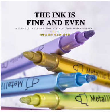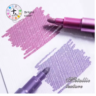 12 Colors Metallic Markers Pens Silver Gold Paint Pens for Black Paper, Glass, Rock Painting