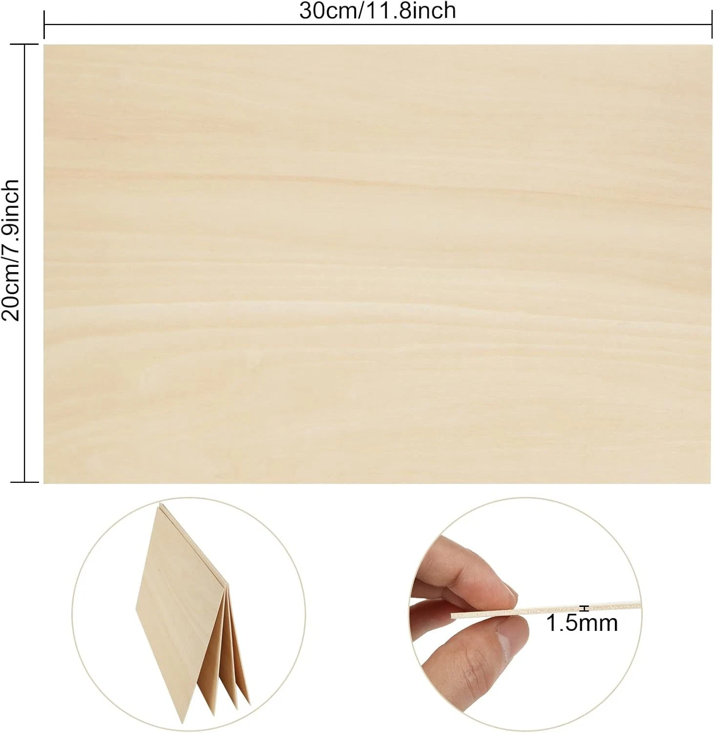 5Pcs 200x300x1.5mm Rectangle Unfinished Craft DIY Basswood Wooden Sheets