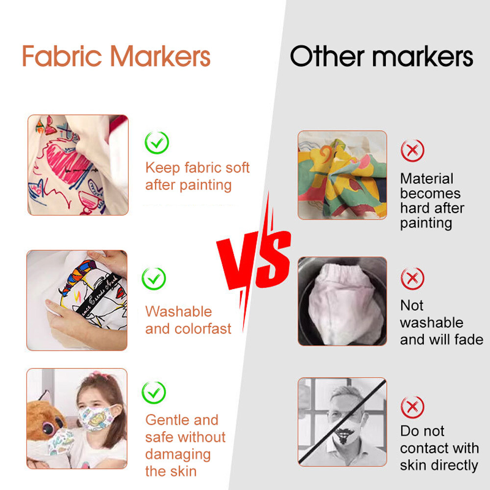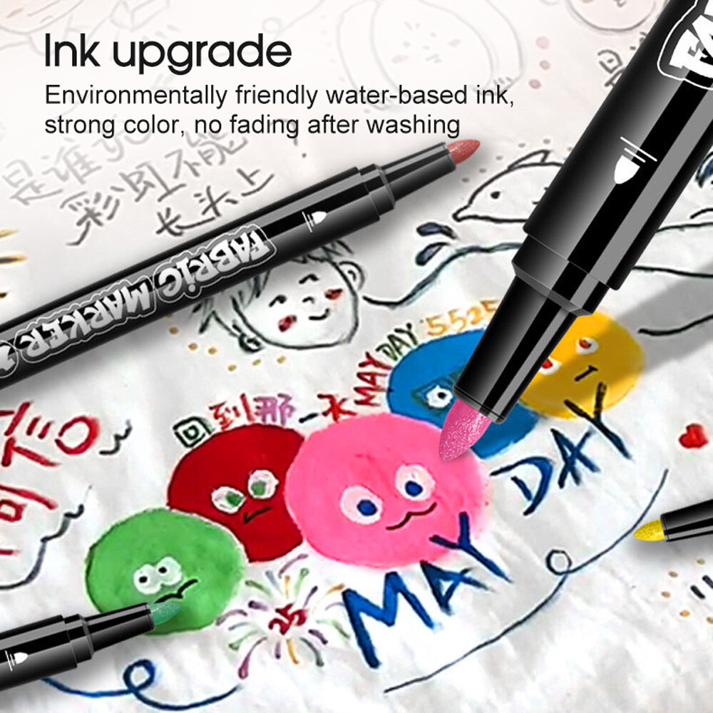 Fabric Markers 24 Colours Washable Permanent Non-Toxic for DIY Art Projects