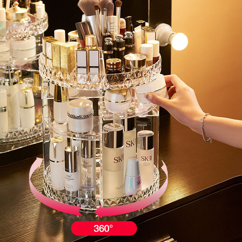 Acrylic Makeup Organiser 360 3 Layer Rotating Clear Cosmetics Holder Storage AU