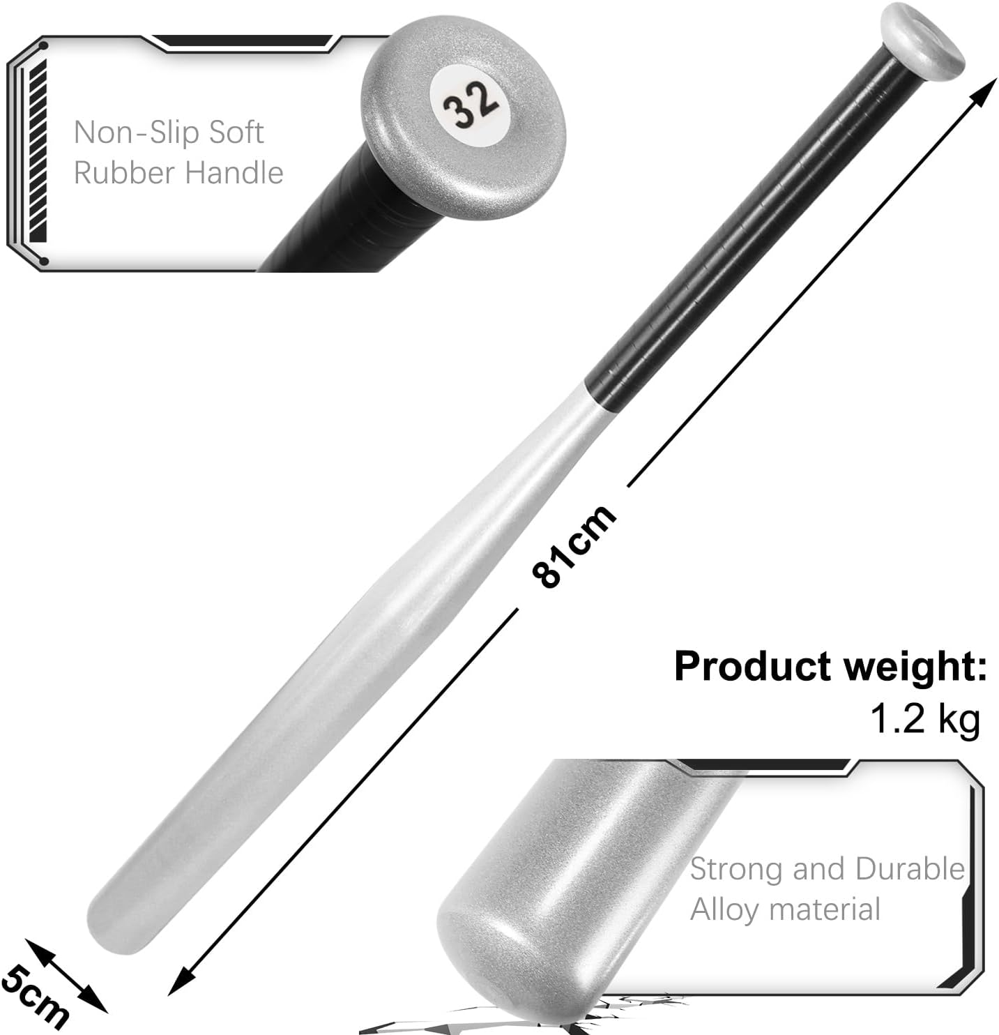 This 32-inch steel baseball bat is perfect for baseball practice, training, and recreational games. Made with hard-anodized steel alloy, it offers high hardness, durability, and long-lasting performance. The anti-skid grip and lightweight design with a slender handle provide comfortable control and precision swings.