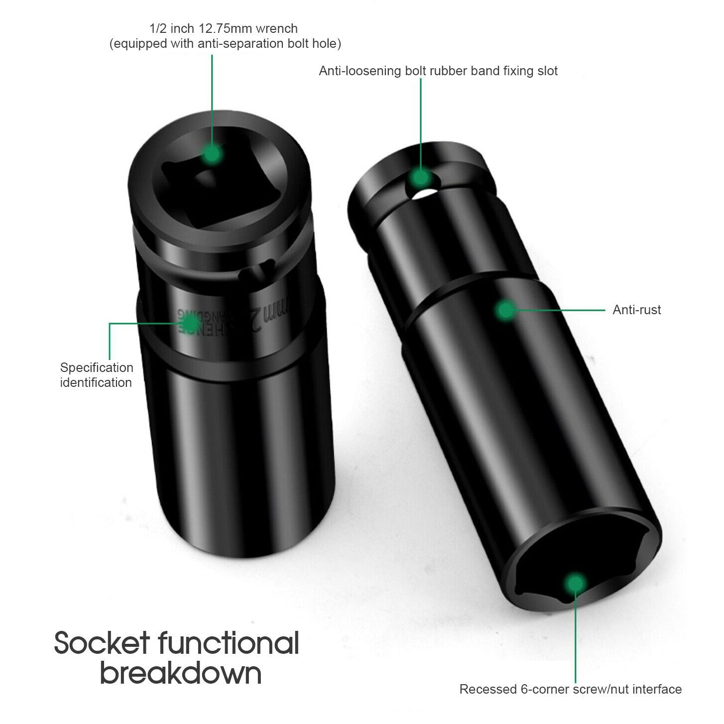 - 6-Point Socket Design :The 6-point socket design of 1/2" drive deep impact socket sets increases contact surface