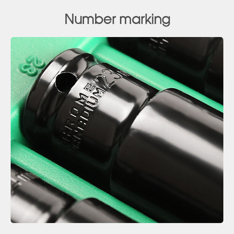 - Metric Socket Set :1/2" drive impact socket set contains 20 pieces metric deep impact sockets with metric size of